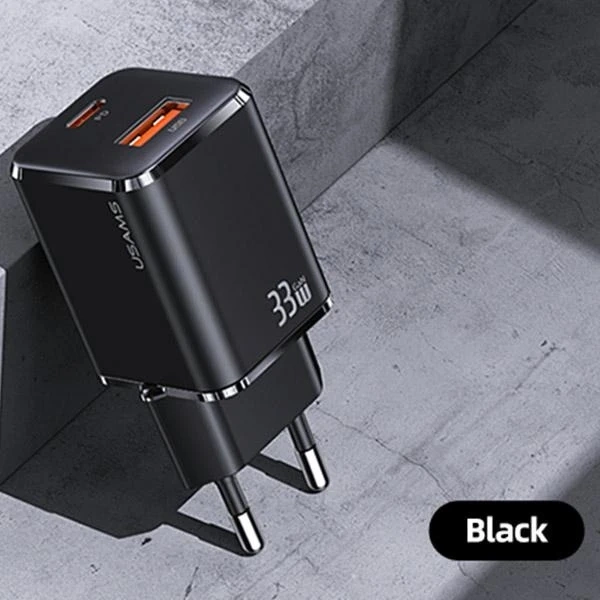 USAMS T43 33W nástěnná nabíječka U63 USB-C to Lightning kabel.