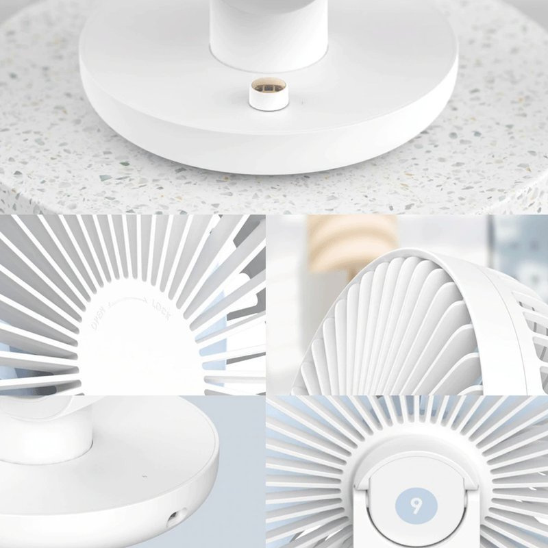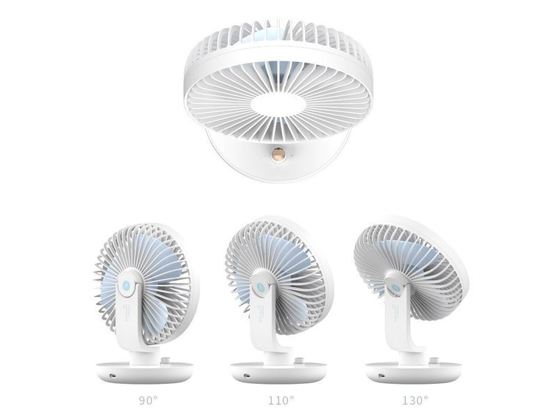 Stolní ventilátor lze také nastavit o 120 stupňů horizontálně (automatické otočení jedním kliknutím) a 90 stupňů vertikálně . Po dvojitém kliknutí ventilátor přejde do režimu spánku, pro jeho přepnutí z režimu spánku znovu dvakrát klikněte. Výrobce navíc ventilátor ve spodní části vybavil gumovými nožičkami, které brání jeho klouzání po povrchu stolu.