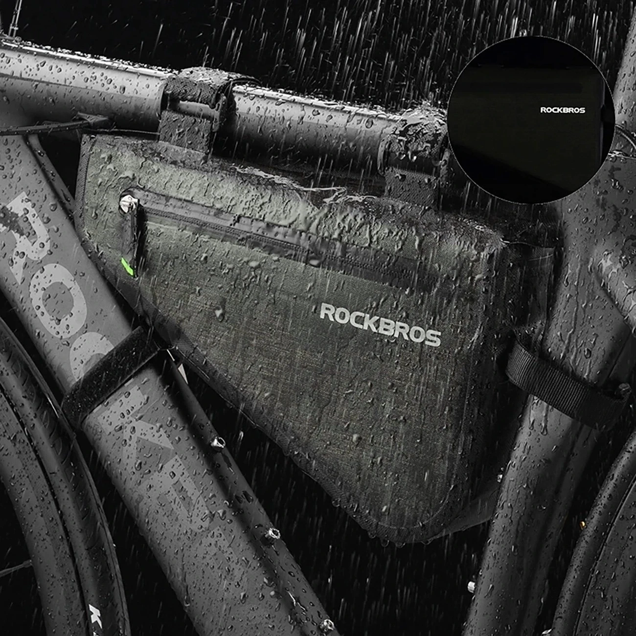 Čtyři pevné suché zipy zajišťují pevné uchycení brašny k rámu. I na nerovnostech brašna zůstává na místě – nehýbe se a nepřekáží při šlapání.