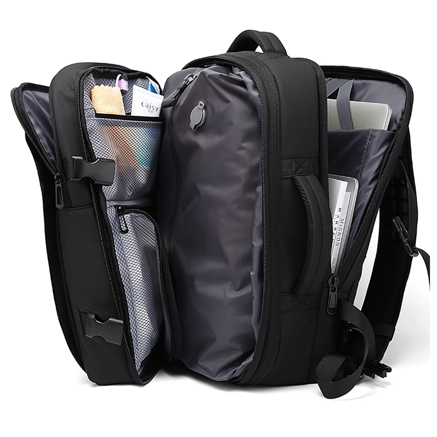 ✅ Hlavní přihrádka batohu - otevírá se jako kufr, je vybavena přihrádkou pro vakuové balení (elektrická vakuová pumpa je součástí sady) a dvěma vodotěsnými kapsami na zip, které se perfektně hodí pro uložení kosmetiky.