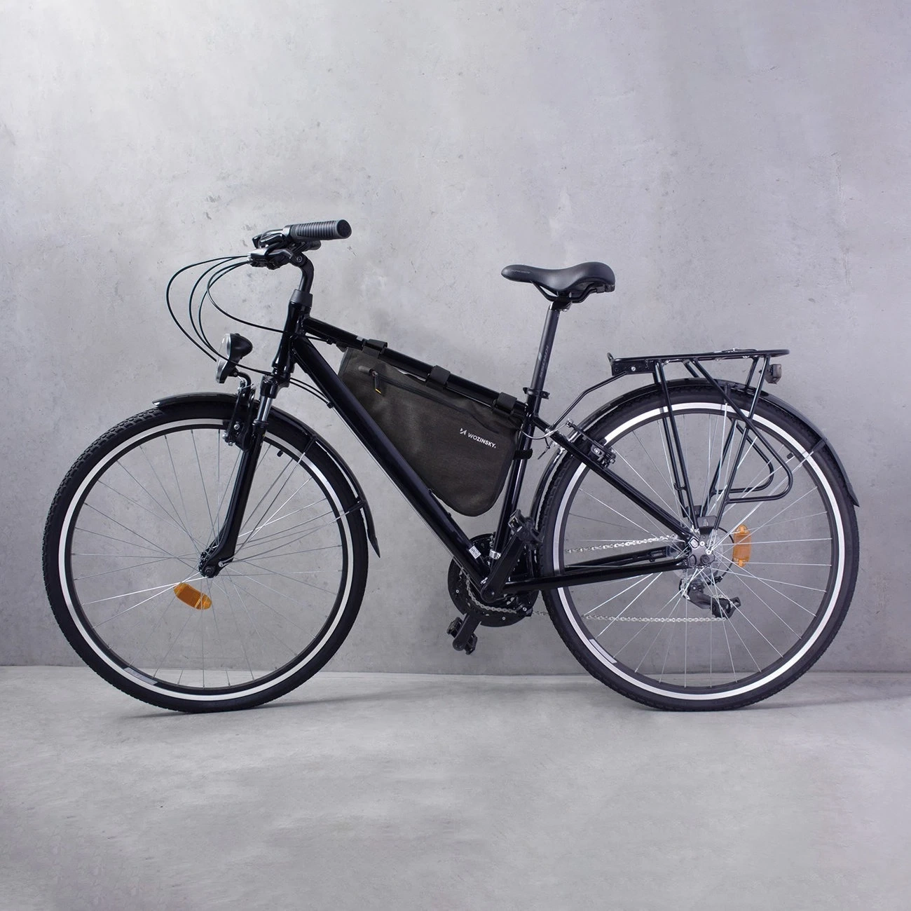 Rámová taška na kolo Wozinsky WBB15BK je ideální pro každodenní ježdění na dvou kolech . Tento model je vyroben z pevného materiálu a má trojúhelníkový tvar . Perfektně sedí na rámu - zapínání na suchý zip umožňuje těsné uchycení rukojetí k průměru trubek . Volbou Wozinsky WBB15BK zajistíte vysokou úroveň stability . Zapomeňte na přehazování tašky za jízdy!