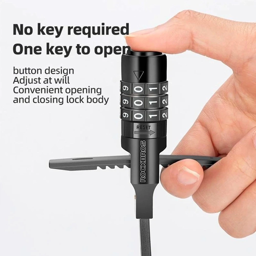 Zámek na kolo Rockbros 3240001001 s kombinací, 0,5 m dlouhý - černý