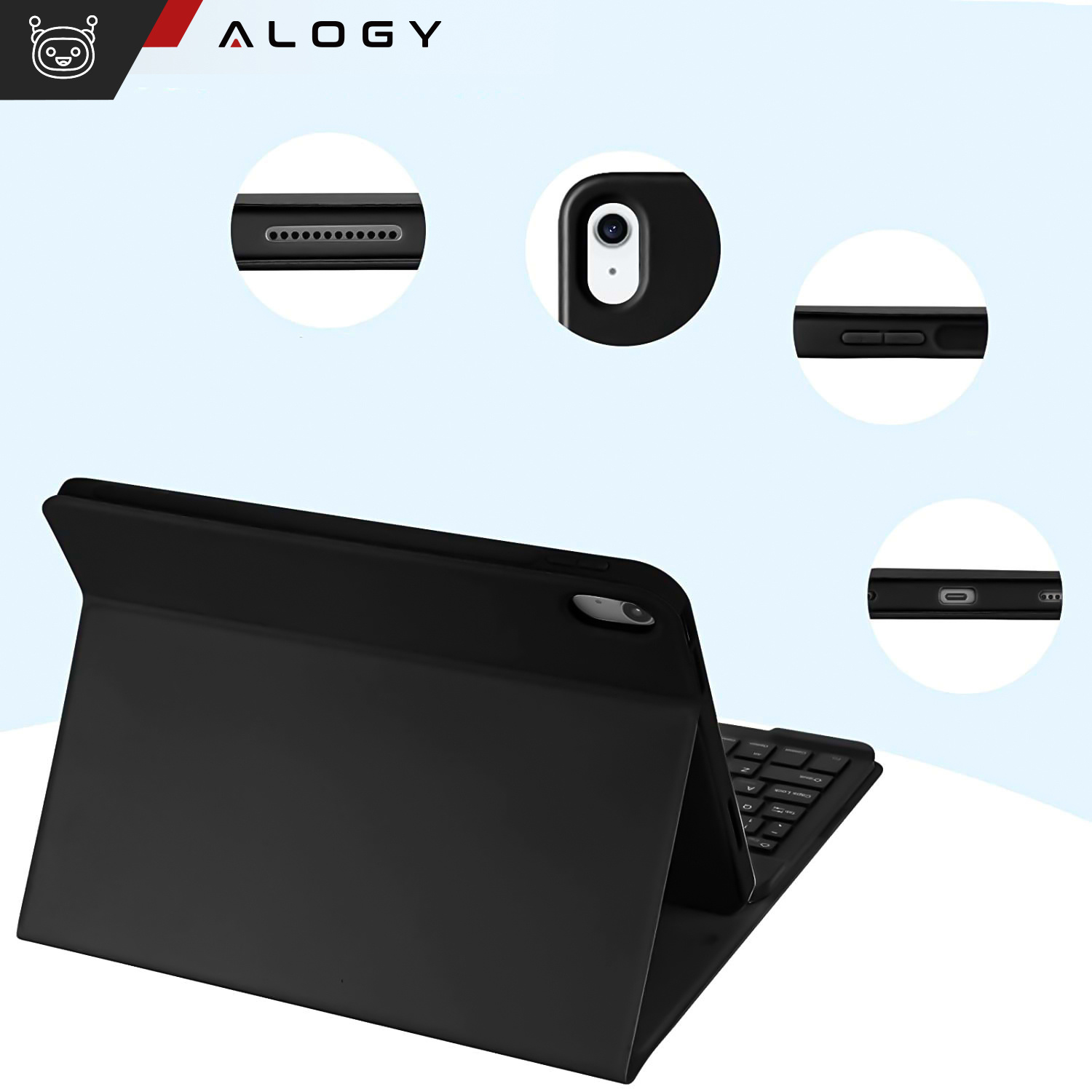 Schutzhülle mit kabelloser Tastatur Alogy Tastaturhülle mit Stylus-Halterung für Apple iPad 10.9 2022 aus schwarzem Glas