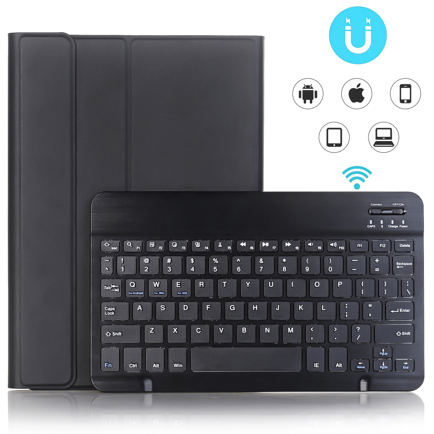 Der wichtigste Vorteil ist die an der Hülle angebrachte Bluetooth-Tastatur, die durch einen versteckten starken Magneten an der Innenseite der Hülle befestigt wird. Über die Bluetooth-Technologie lässt sich die Tastatur mit dem Tablet koppeln, der Ladevorgang erfolgt über das mitgelieferte Micro-USB-Kabel.