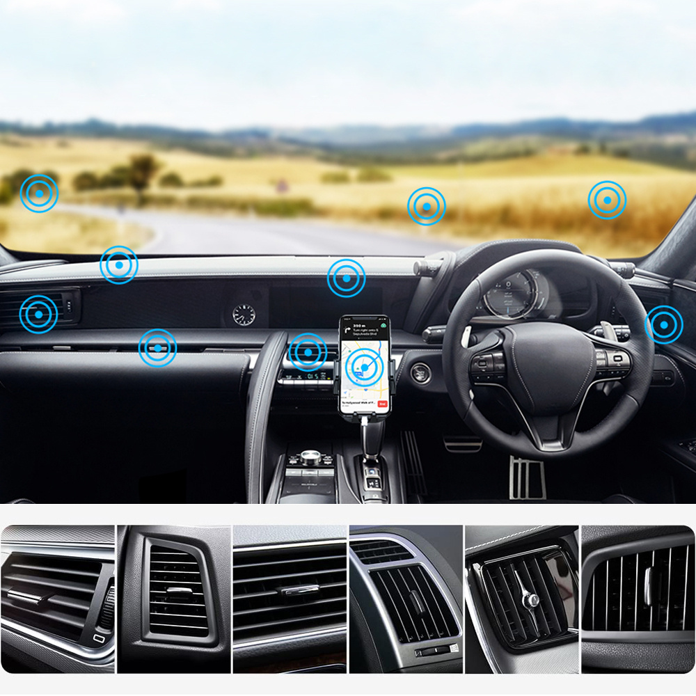 Der Halter kann einfach an einem Schnell-, Armaturenbrett- oder Autolüftungsgitter montiert werden. Das Set enthält eine Halterung zur Montage am Lüftungsgitter für besseren Bedienkomfort.