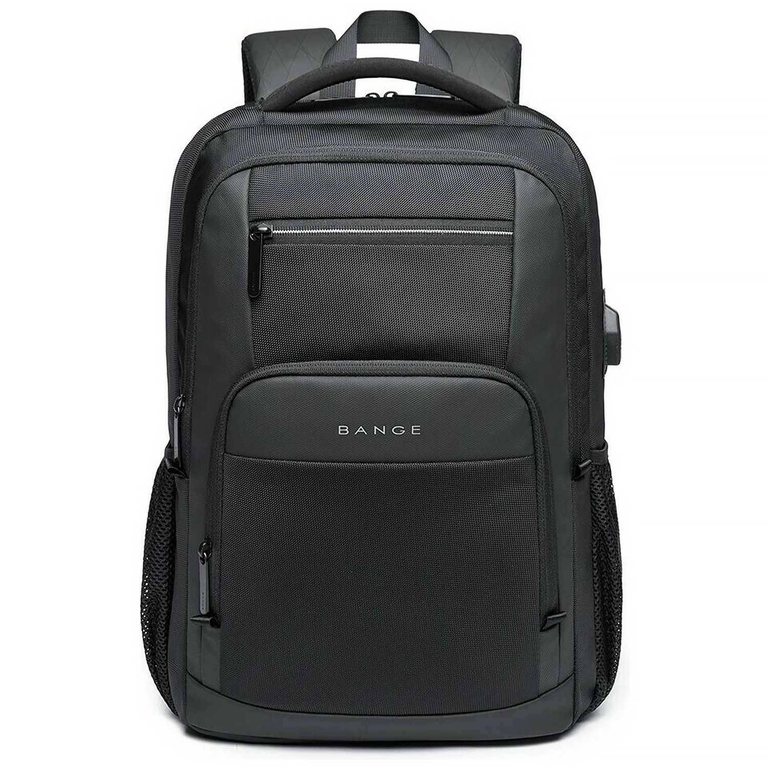 Bange wasserdichter Rucksack für 15,6-Zoll-Laptop, Stadtreisender, 45 x 30 x 16 cm, für Arbeit, Flugzeug, Herren, Damen, mit USB-Anschluss Schwarz