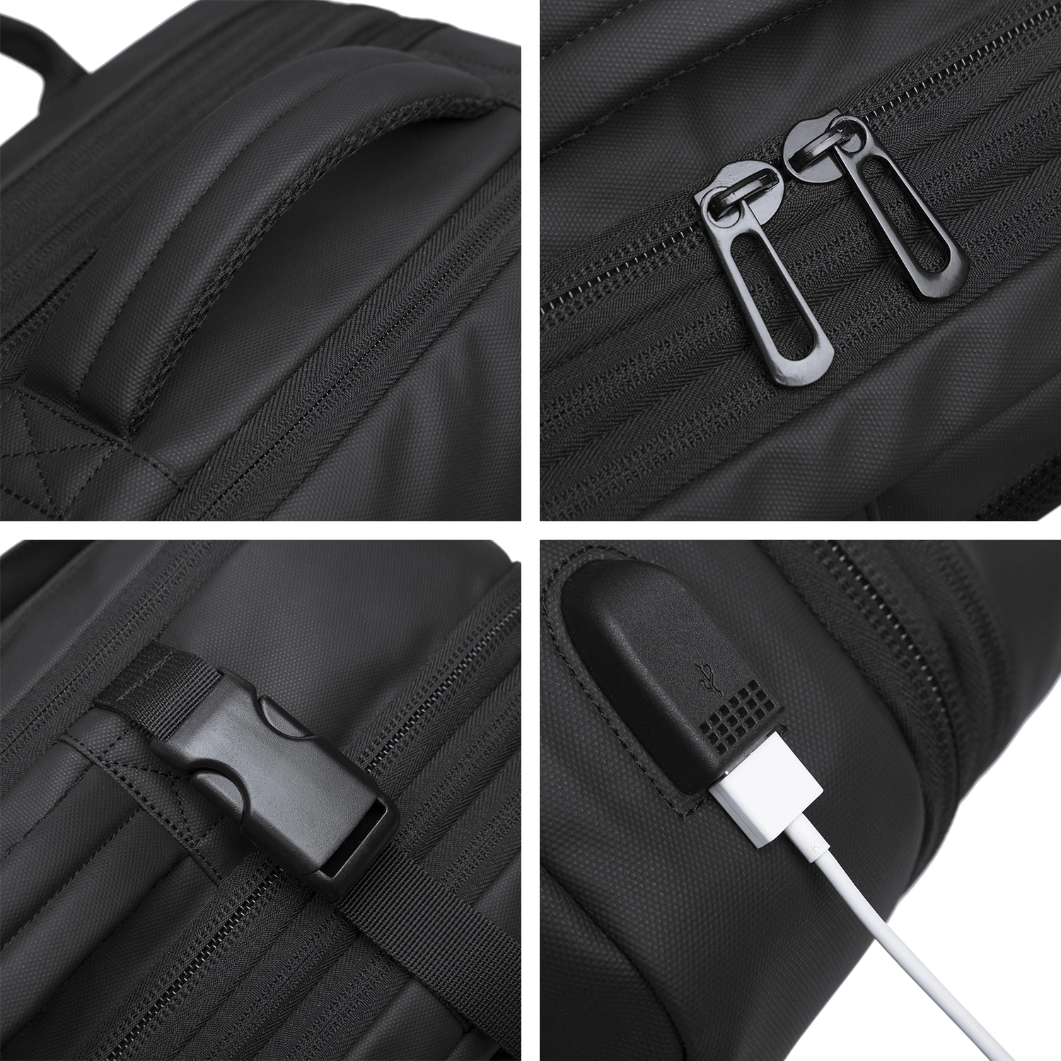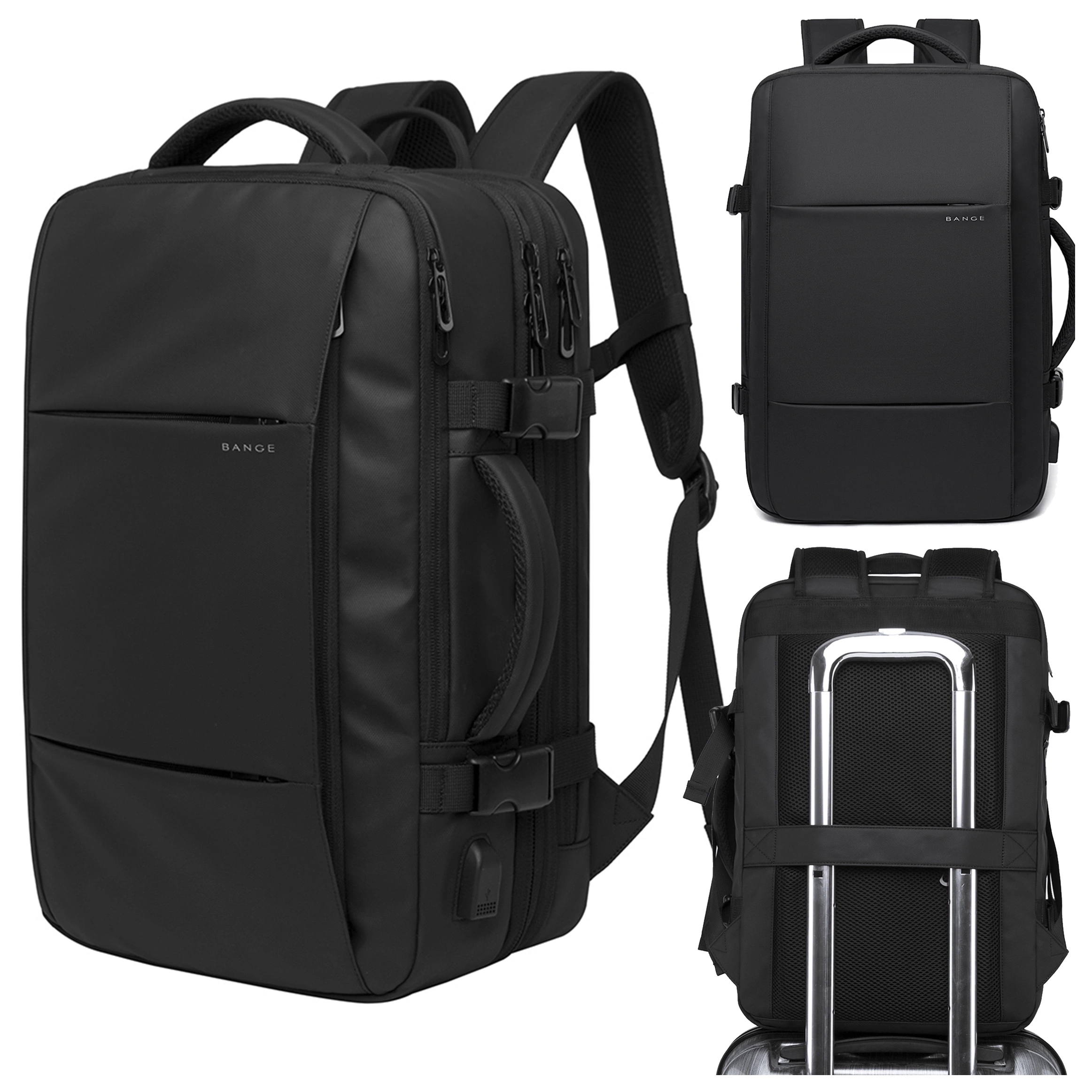Bange wasserdichter Rucksack für 15,6-Zoll-Laptop, Stadtreisender, 45 x 30 x 16 cm, für Arbeit, Flugzeug, Herren, Damen, mit USB-Anschluss Schwarz