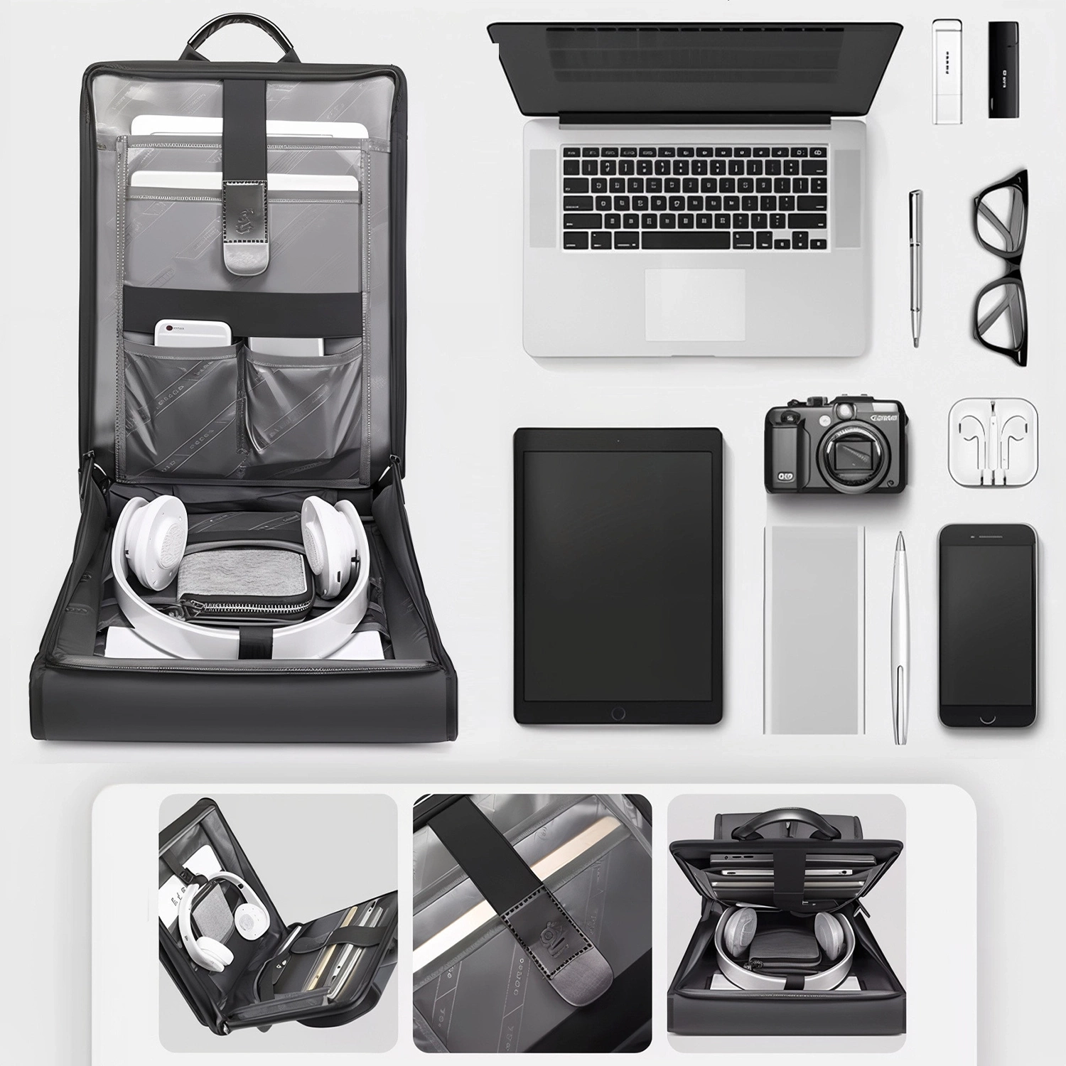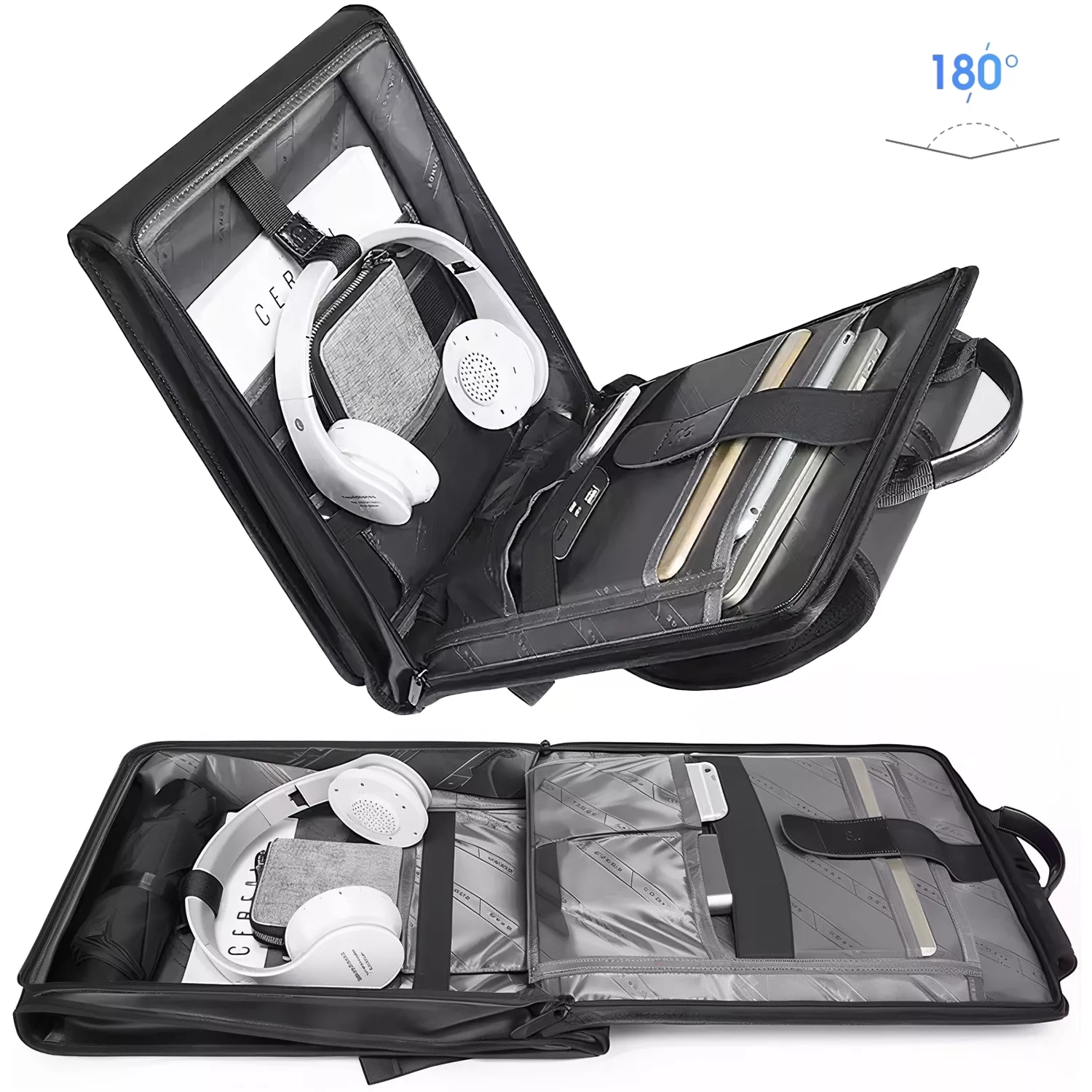 - Taschen: 1 großes Fach mit Fächern, mit Platz für Laptop, Tablet, Kopfhörer und Zubehör