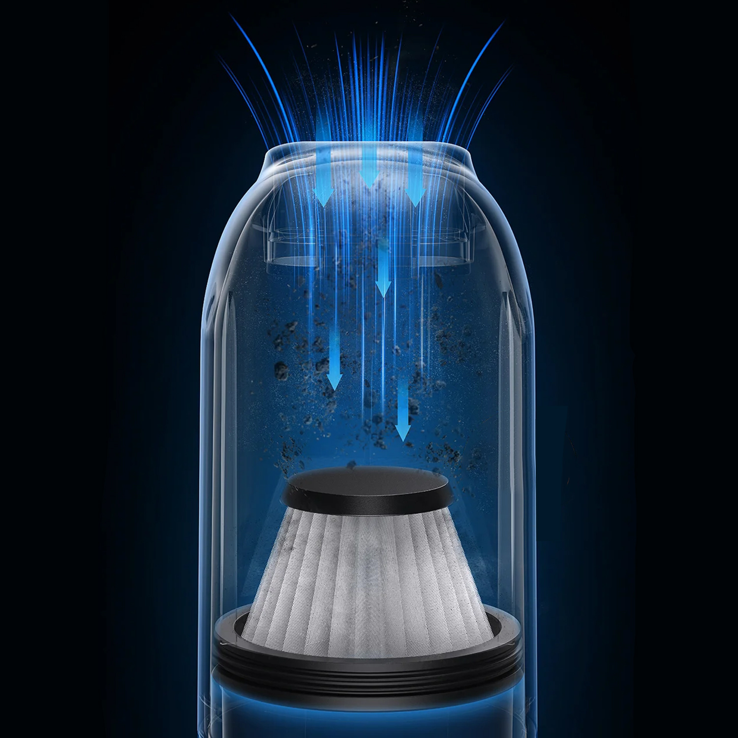 Der Staubsauger ist mit einem 2000-mAh-Akku ausgestattet, was sich in einer langen Arbeitszeit niederschlägt. Dank dessen können Sie es mit einer einzigen Ladung bis zu 20 Mal verwenden. Darüber hinaus eliminiert der HEPA-Filter bis zu 99,7 der Schadstoffe und verhindert eine erneute Verschmutzung der Luft.