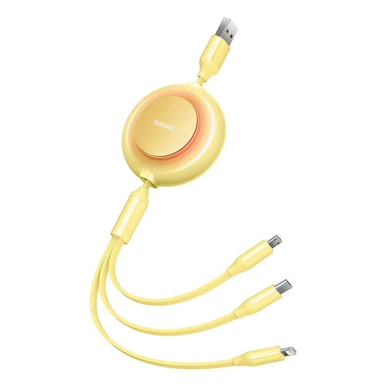 Dieses praktische Baseus-Kabel ermöglicht schnelles und sicheres 3,5-A-Laden und Datenübertragung am Lightning-Anschluss mit einer Geschwindigkeit von 480 Mb/s. Mit seiner Hilfe können Sie Geräte verschiedener Hersteller aufladen, denn das Kabel bietet gleich 3 Ausgänge: Micro-USB, Lightning und USB-C. Das gleichzeitige Laden von drei Geräten spart Ihnen Zeit, außerdem können Sie dank des aufrollbaren Designs die Länge des Kabels an Ihre Bedürfnisse anpassen.