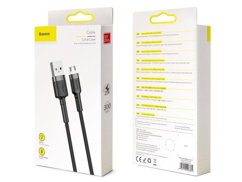 Das Baseus Cafule-Kabel ist ein 100 % originales Baseus- Produkt . Die Kabellänge beträgt 300 cm bei einem maximalen Ausgangsstrom von 2A .