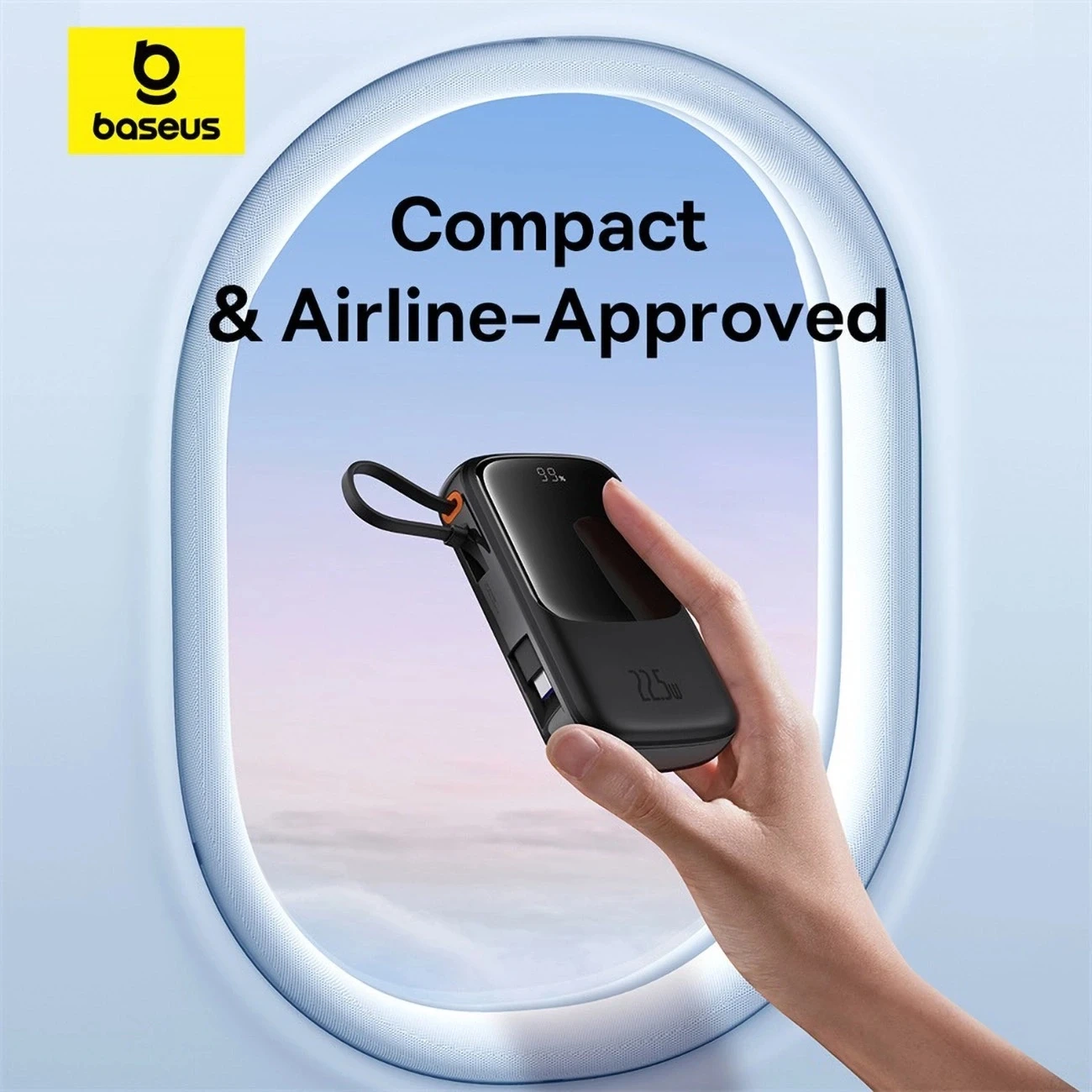 Baseus QPow Pro 10000 mAh 22,5 W Powerbank mit integriertem USB-C-Kabel und Display – Schwarz