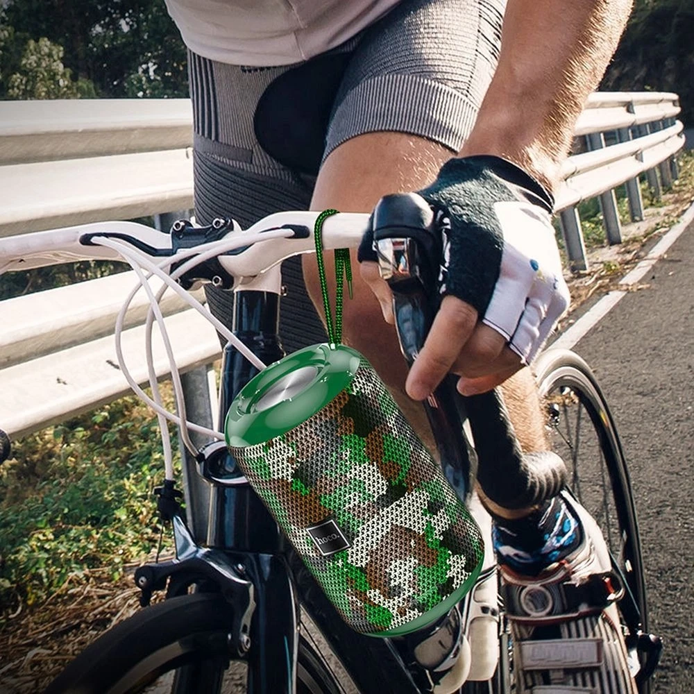 Hoco HC1 ist ein kleiner, aber überraschend leistungsstarker Bluetooth-Lautsprecher in Camouflage -Ausführung , der speziell für aktive Benutzer entwickelt wurde. Dank seiner kompakten Abmessungen und der bequemen Kordel können Sie ihn überallhin mitnehmen – zum Spaziergang, Picknick, Strand oder Camping.