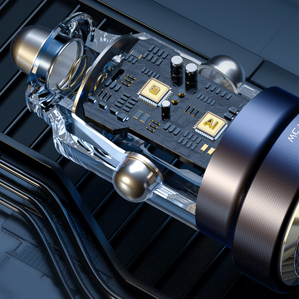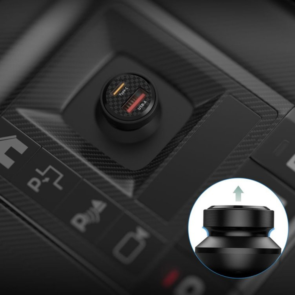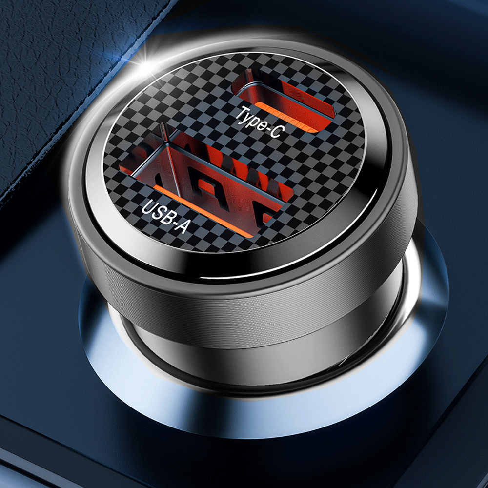 Autoladegerät mit zwei Anschlüssen, ausgestattet mit Steckdosen mit einer Gesamtleistung von 45 W.