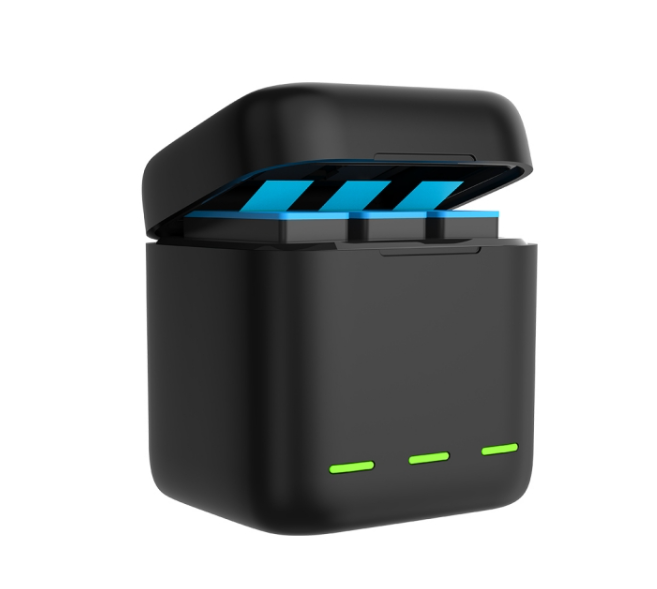 Bequemes Aufbewahren und Laden von bis zu 3 Akkus für GoPro Hero 9 und Hero 10 gleichzeitig? Jetzt ist es möglich! Das tragbare 3-Kanal-Ladegerät Telesin GP-BNC-902 überrascht mit Effizienz und gewährleistet eine sichere Verwendung. Damit können Sie alle 3 Akkus in nur 2,5 Stunden aufladen! Dank des verbesserten Designs ist es einfach und bequem zu bedienen und gleichzeitig leicht zu transportieren. Über den Ladezustand informieren 3 farbige Leuchtanzeigen. Das Set enthält auch 3 Batterien für GoPro Hero von Telesin.