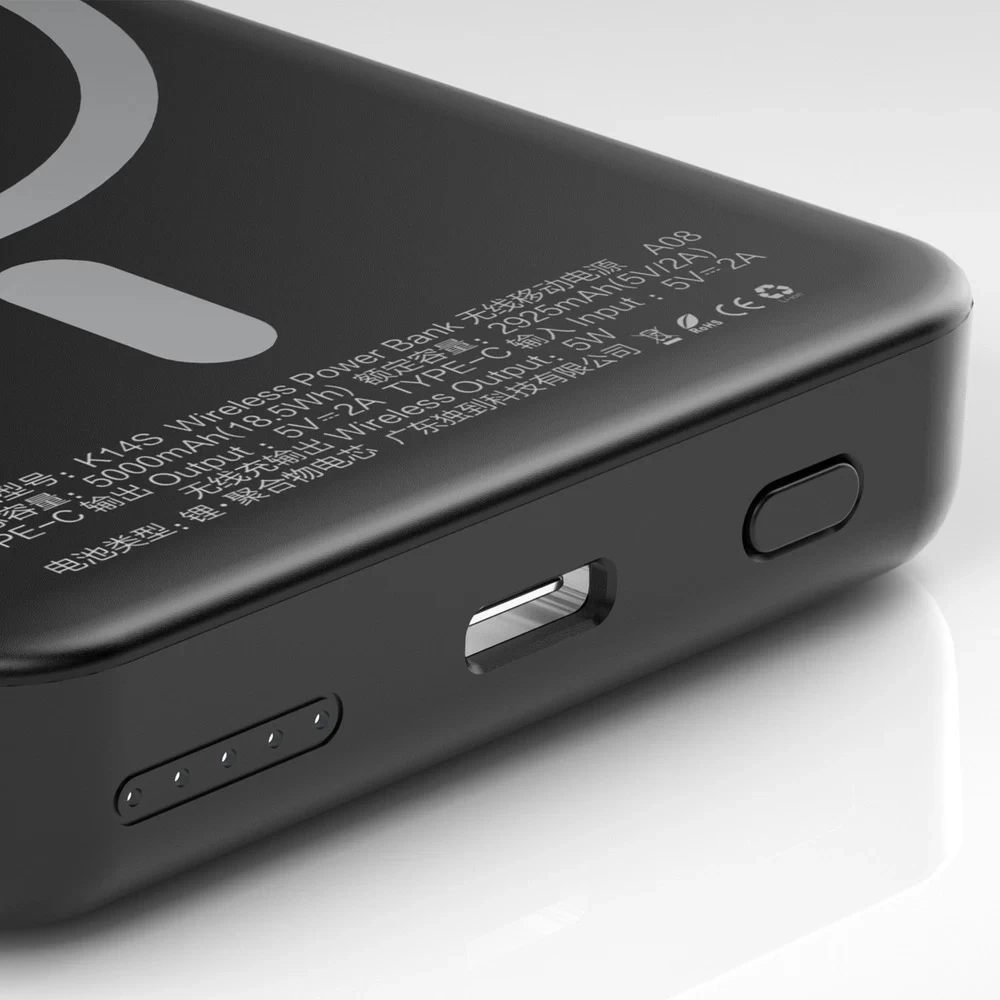 • Powerbank Dudao K14S ist eine Powerbank mit einer Kapazität von 5000 mAh mit der Möglichkeit des kabellosen Ladens von MagSafe, dank der wir das iPhone kabellos mit einer Leistung von maximal 5 W aufladen können.