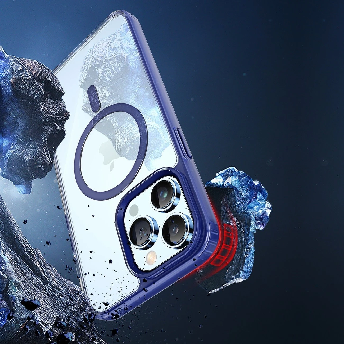 Magnetische iPhone 14 Pro Hülle mit MagSafe mit blauem Rahmen