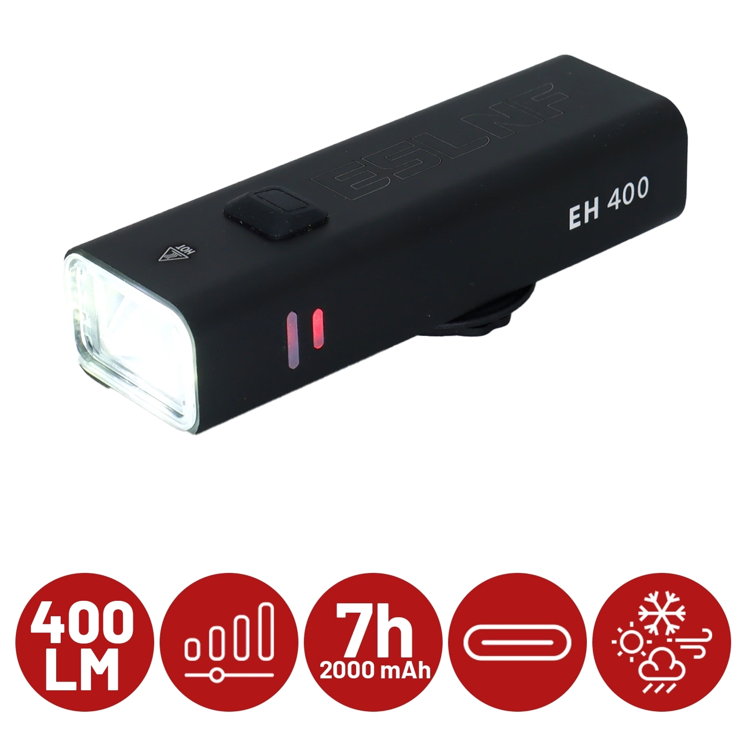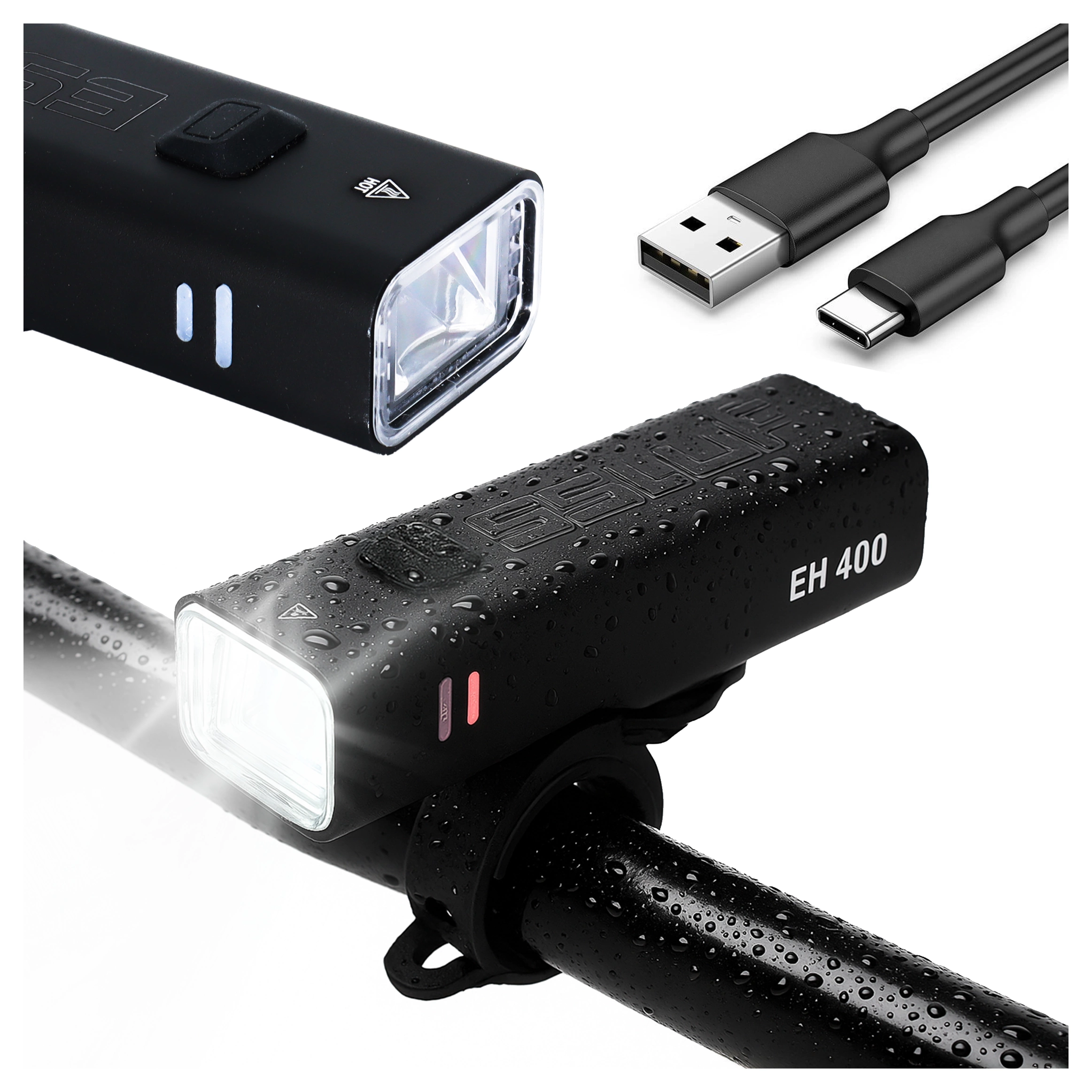 ▶️ ESLNF EH400 LED-Fahrradlampe 400 lm 2000 mAh wasserdicht USB-C Schwarz
