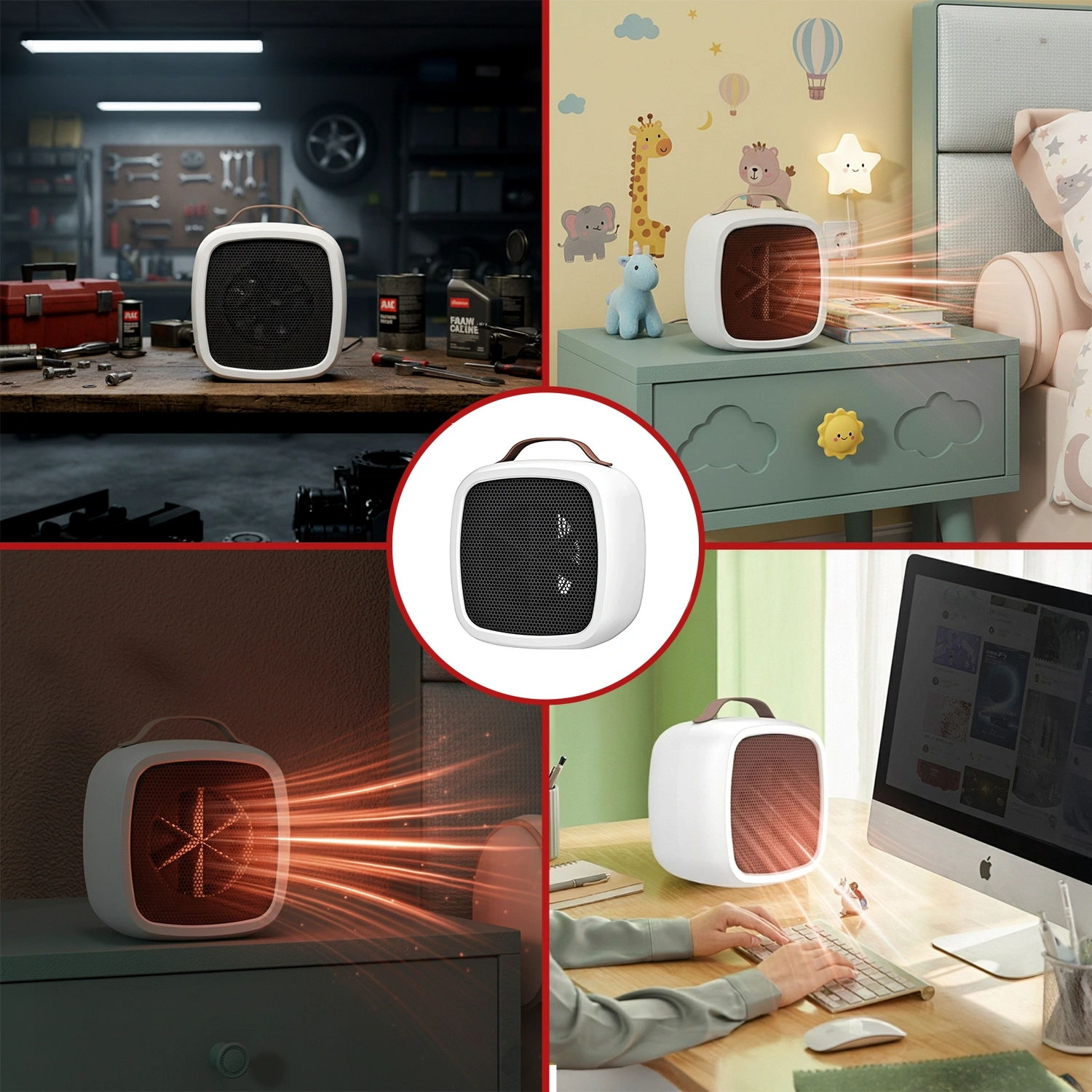 Dieser Mini-Heizstrahler ist der perfekte Reisebegleiter, mit dem Sie Ihre Hände oder Füße schnell aufwärmen können. Es eignet sich auch perfekt für Orte wie einen Schreibtisch, einen Tisch oder den Boden und bietet eine angenehme Wärme bei verschiedenen Aktivitäten wie Lesen, Arbeiten, Lernen oder Fernsehen.