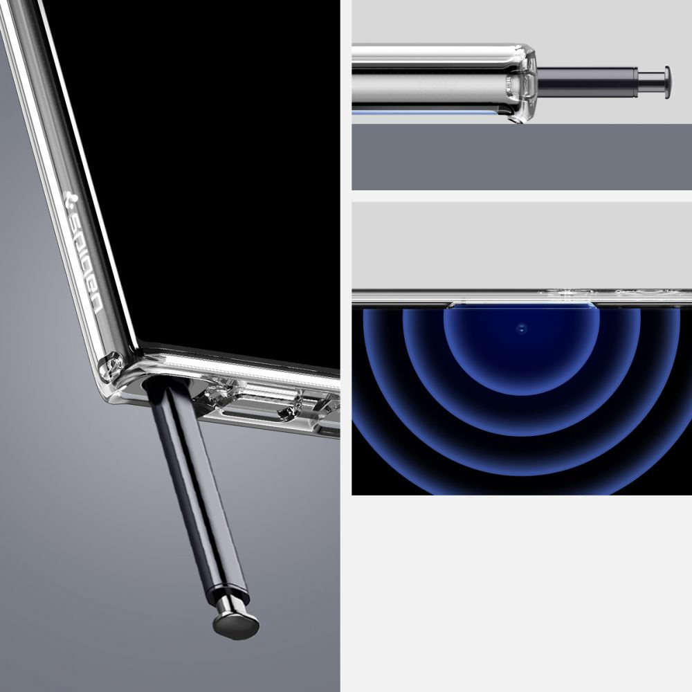 Die Hülle der Liquid Crystal -Serie der renommierten Firma Spigen ist eine Hülle, die dem Samsung Galaxy S22 Ultra gewidmet ist. Für die Konstruktion wurde das hochwertigste flexible TPU verwendet, das unserem Gerät Schutz vor Kratzern und unerwünschten Beschädigungen bietet. Das ultraflache Design macht das Case extrem dünn, schmiegt sich perfekt an das Gerät an und vergrößert dessen Größe nicht wesentlich.