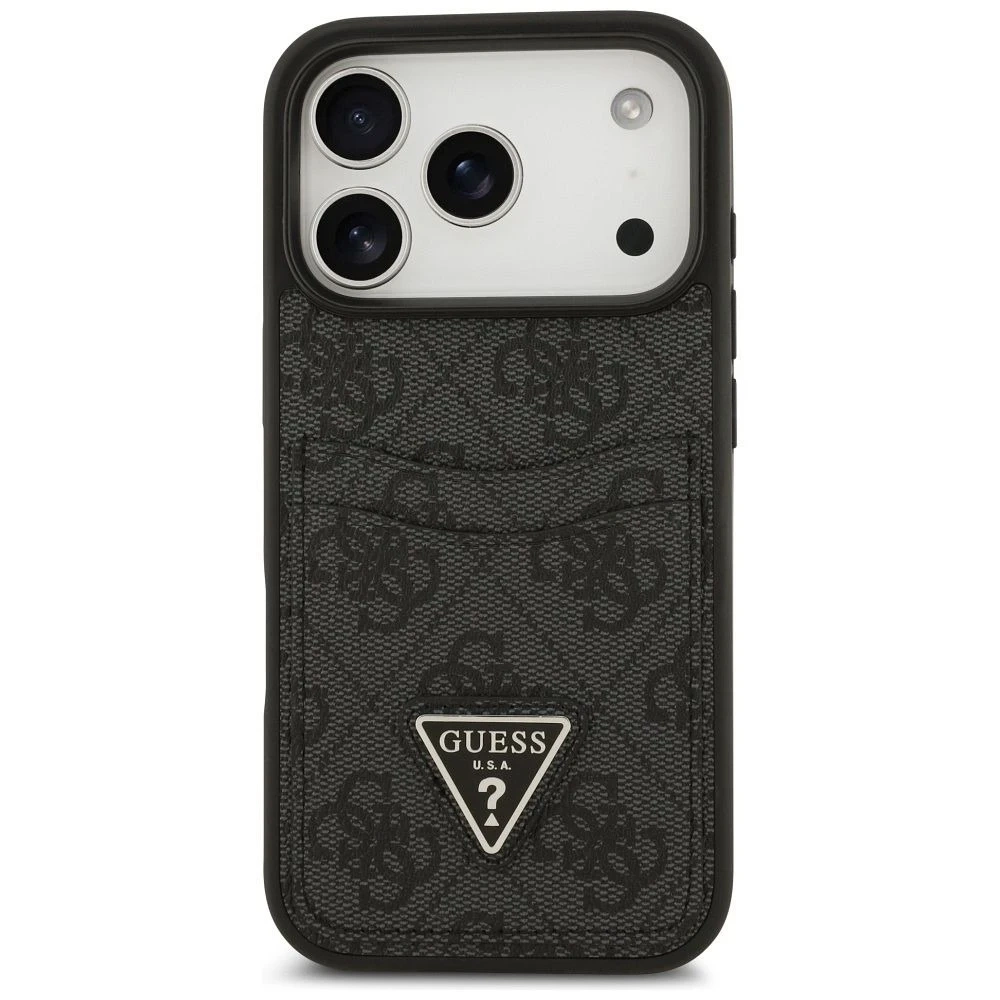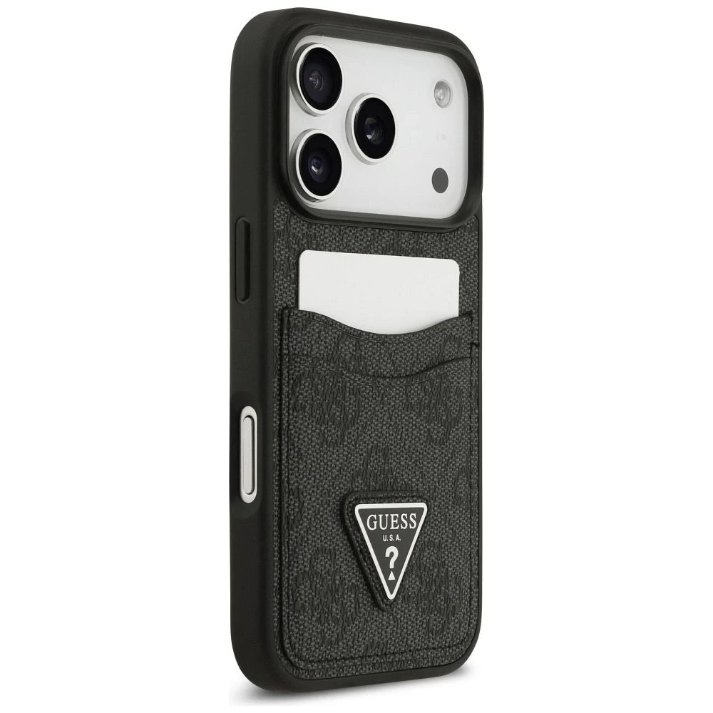 Etui Guess 4G Double Card Triangle do iPhone 17 Pro to akcesorium, które łączy luksusowy wygląd z codzienną wygodą. Czarne etui wykonane z ekoskóry z charakterystycznym monogramem 4G prezentuje się stylowo i elegancko, a jednocześnie zapewnia skuteczną ochronę telefonu. To produkt stworzony dla osób, które cenią sobie estetykę i praktyczne rozwiązania.