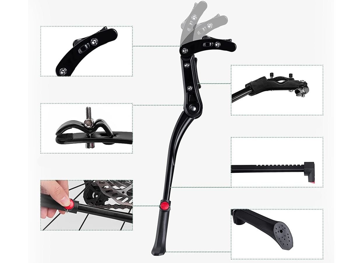 Ein stabiles Rockbros-Fahrradbein besteht aus einer Aluminiumlegierung, dank der es uns viele Jahre dienen wird. Es wird am Hinterbau montiert. Die Oberseite des Seitenständers ist von 20 bis 70 Grad stufenlos verstellbar , sodass er an jeden Fahrradtyp angepasst werden kann. Dank des rutschfesten und breiten Beins können wir sicher sein, dass das Fahrrad nicht umkippt, wenn es auf einen weichen Untergrund gestellt wird.