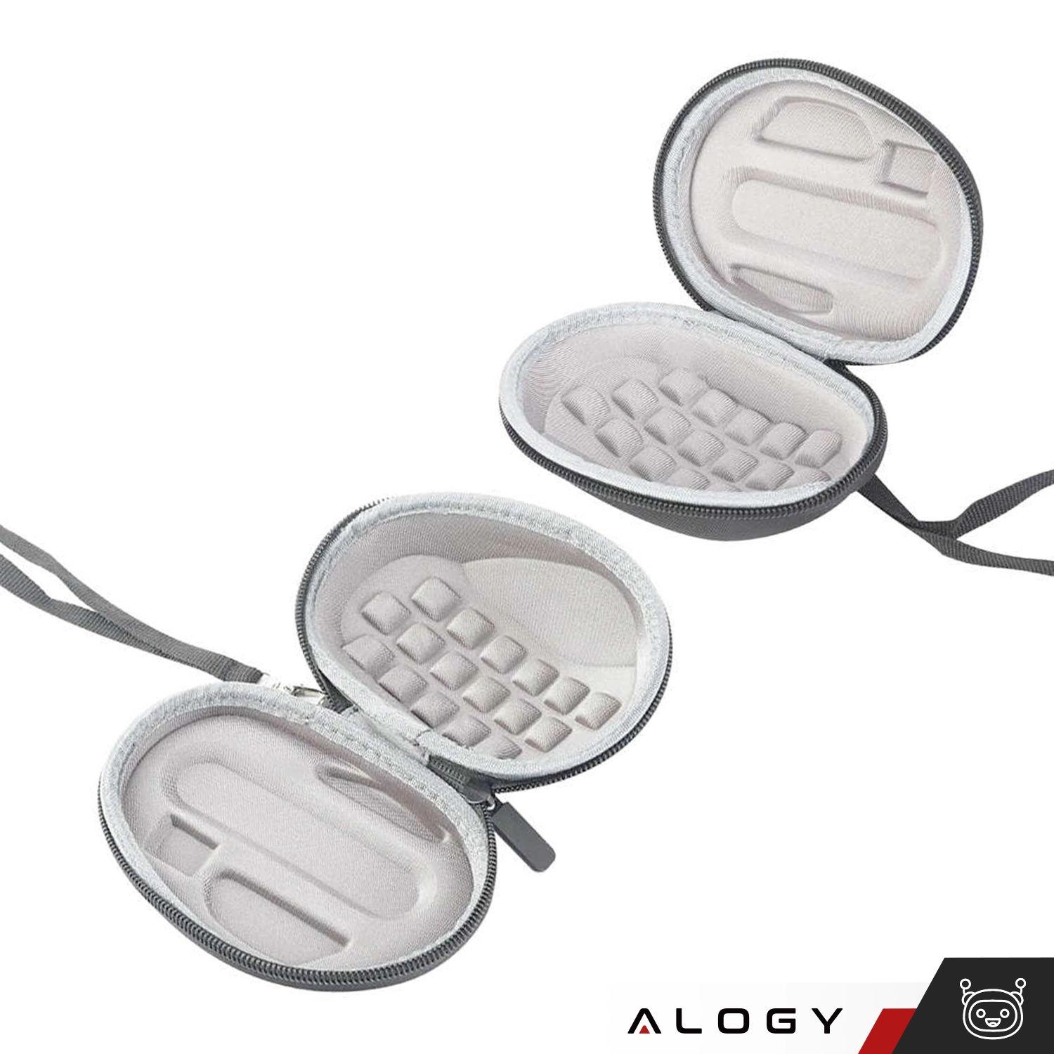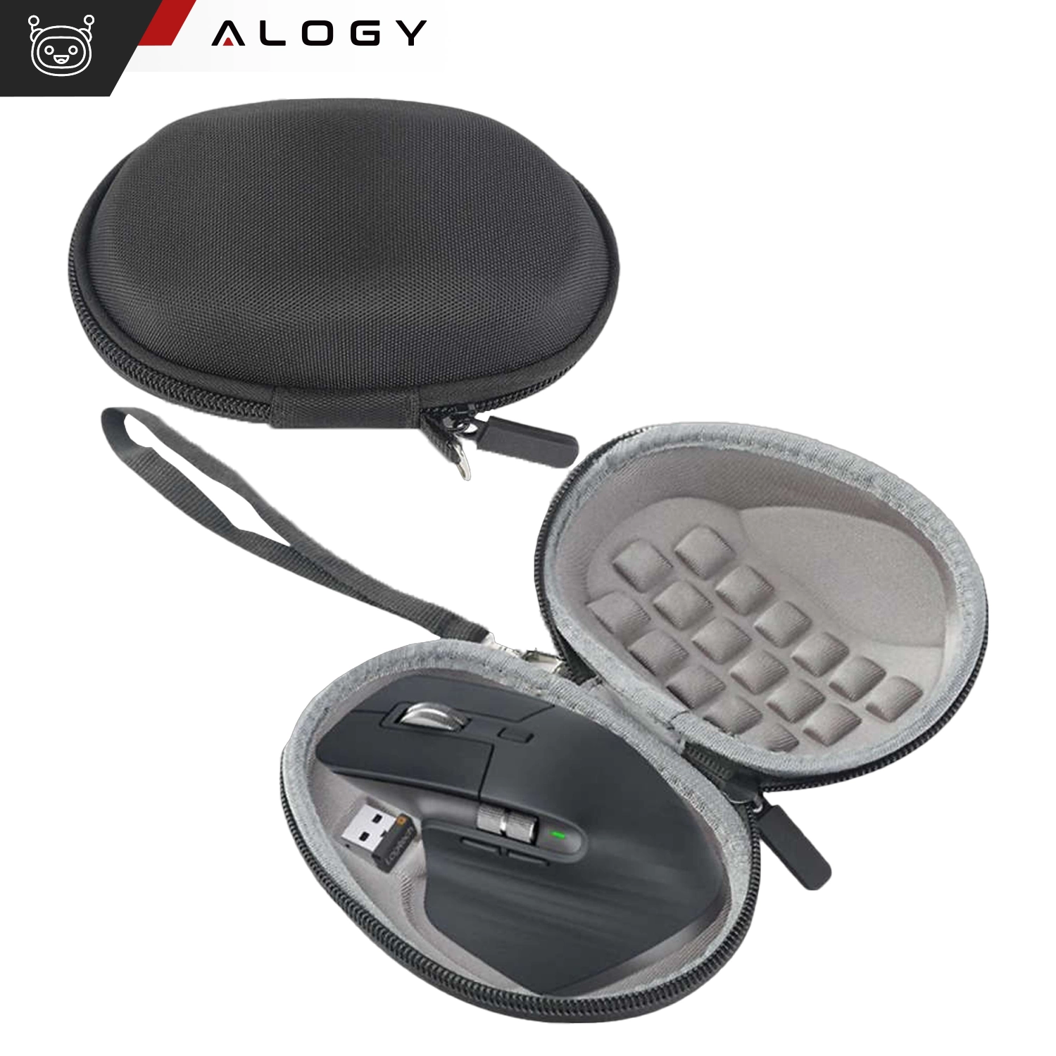Die Logitech MX Master 3 gewidmete Hartschalentasche Alogy ist ein hochwertiges Produkt, das mit viel Liebe zum kleinsten Detail hergestellt wurde. Das Material, aus dem es hergestellt wurde, ist hochwertiger EVA-Schaum, der staubdicht, wasserdicht und stoßfest ist. Die Tasche hat einen Reißverschluss und ein Trageband, was das Tragen des Geräts erleichtert.