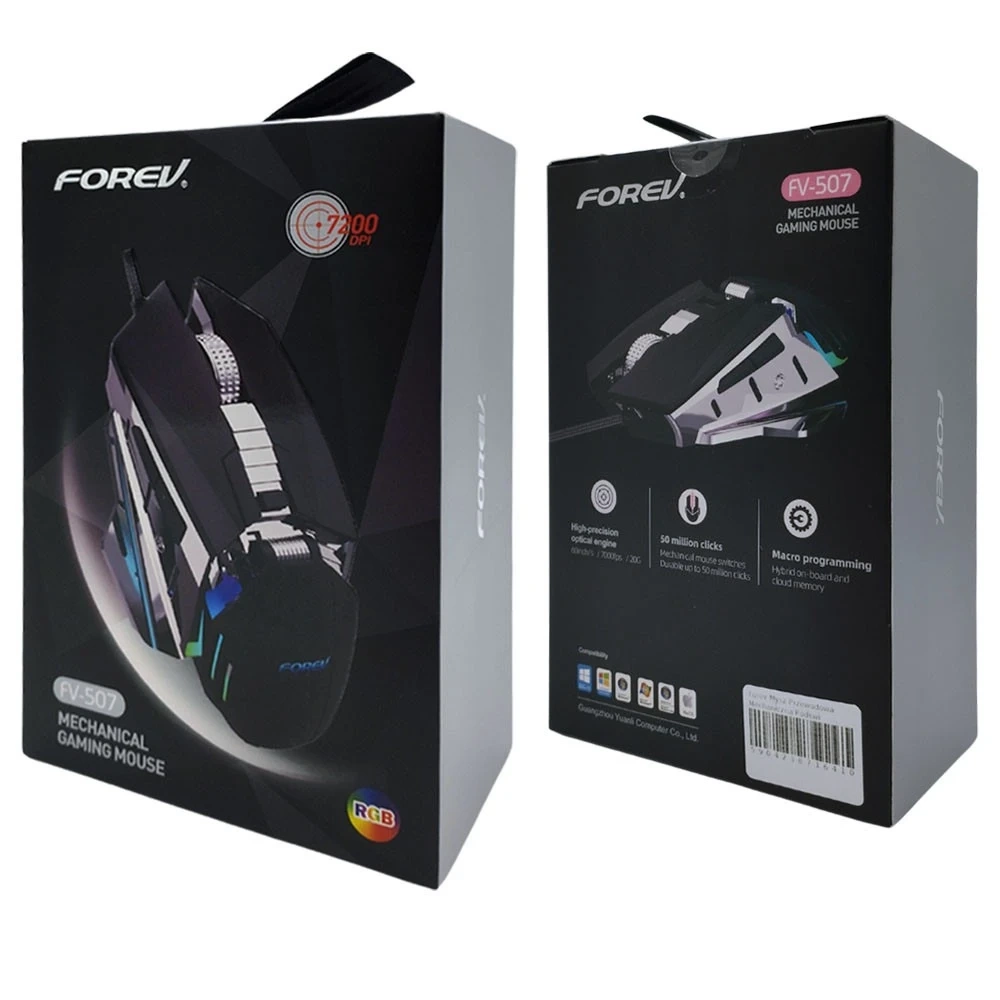 Die FOREV FV-507 Gaming-Maus ist eine zuverlässige, kabelgebundene Gaming-Maus, die bei jedem Spiel volle Kontrolle und Stil bietet. Dank einstellbarer DPI-Empfindlichkeit, dynamischer RGB-Hintergrundbeleuchtung und ergonomischer Form passt sich die Maus perfekt an verschiedene Spielstile an und garantiert Komfort auch bei langen Sitzungen. Es wurde für Gamer aller Spielstärken entwickelt und bietet eine hohe Haltbarkeit und sofortige Reaktion, was es zum perfekten Werkzeug für die Beherrschung virtueller Schlachtfelder macht: Einstellbare DPI-Empfindlichkeit: Passt sich an eine Vielzahl von Spielstilen an, von präzisen Bewegungen bis hin zu schnellen Reaktionen Hintergrundbeleuchtung: Dynamische, mehrfarbige Hintergrundbeleuchtung, die Stil verleiht und die Sichtbarkeit erhöht. Bequeme Form, die sich an die Hand anpasst und Ermüdungserscheinungen bei Langzeitgebrauch reduziert. Hohe Haltbarkeit: Langlebige Schalter, die Zuverlässigkeit über viele Millionen Klicks hinweg garantieren : Sofortige Reaktion auf jede Bewegung, ideal für dynamische E-Sport-Spiele. Technische Daten: Maustyp: Kabelgebundene Gaming-Maus. Hintergrundbeleuchtung: RGB. DPI-Auflösung: Einstellbar (mehrstufig). Tasten: Hochwertige, langlebige Schalter. Ergonomie: Profilierte Form für eine komfortable Nutzung. Kompatibilität: Windows, macOS, Linux. Farbe: Schwarz