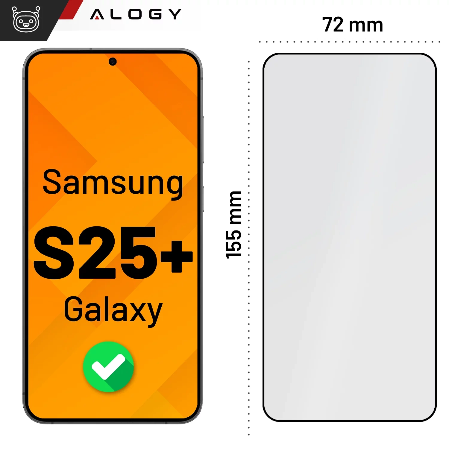 ✅ Das gehärtete Glas Alogy EasyShield™️ haftet fest auf dem flachen Teil des Bildschirms des Samsung Galaxy S25 Plus und ist dank seiner geringen Dicke (0,3 mm) praktisch unsichtbar und während der Benutzung nicht wahrnehmbar.
