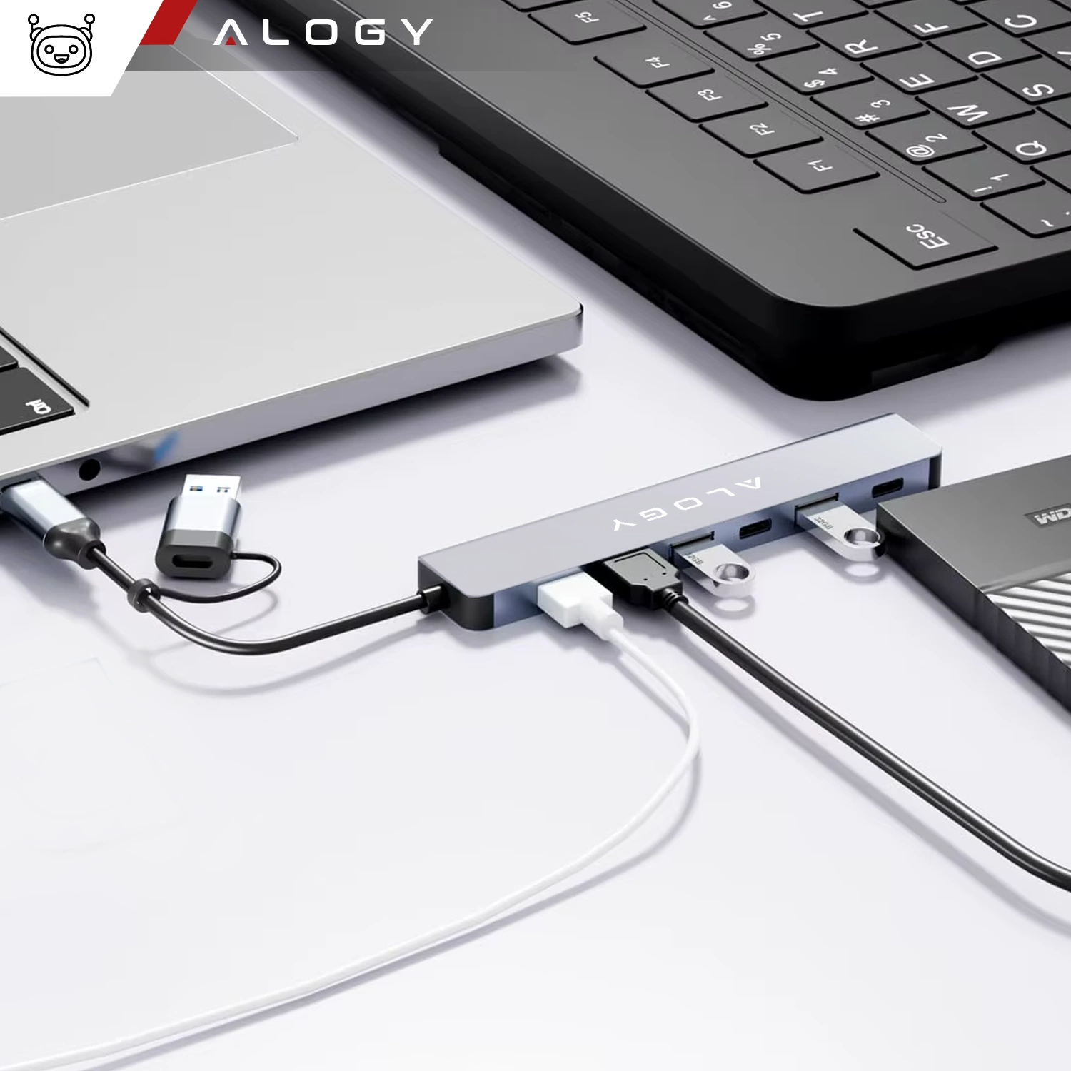 HUB-Splitter Alogy-Adapter für Computer-Laptop mit USB-C auf 3x USB-A 2.0 1x USB-A 3.0 Grau