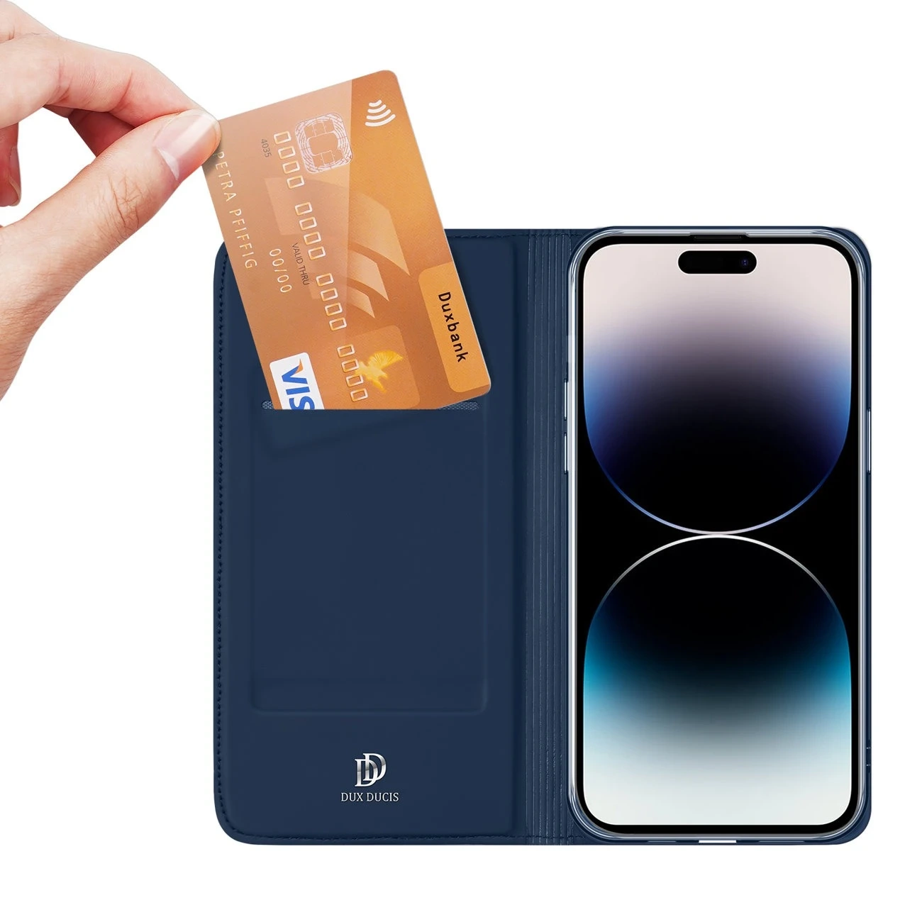 iPhone 15 Pro Max-Hülle aus der Dux Ducis Skin Pro-Serie mit blauer Klappe