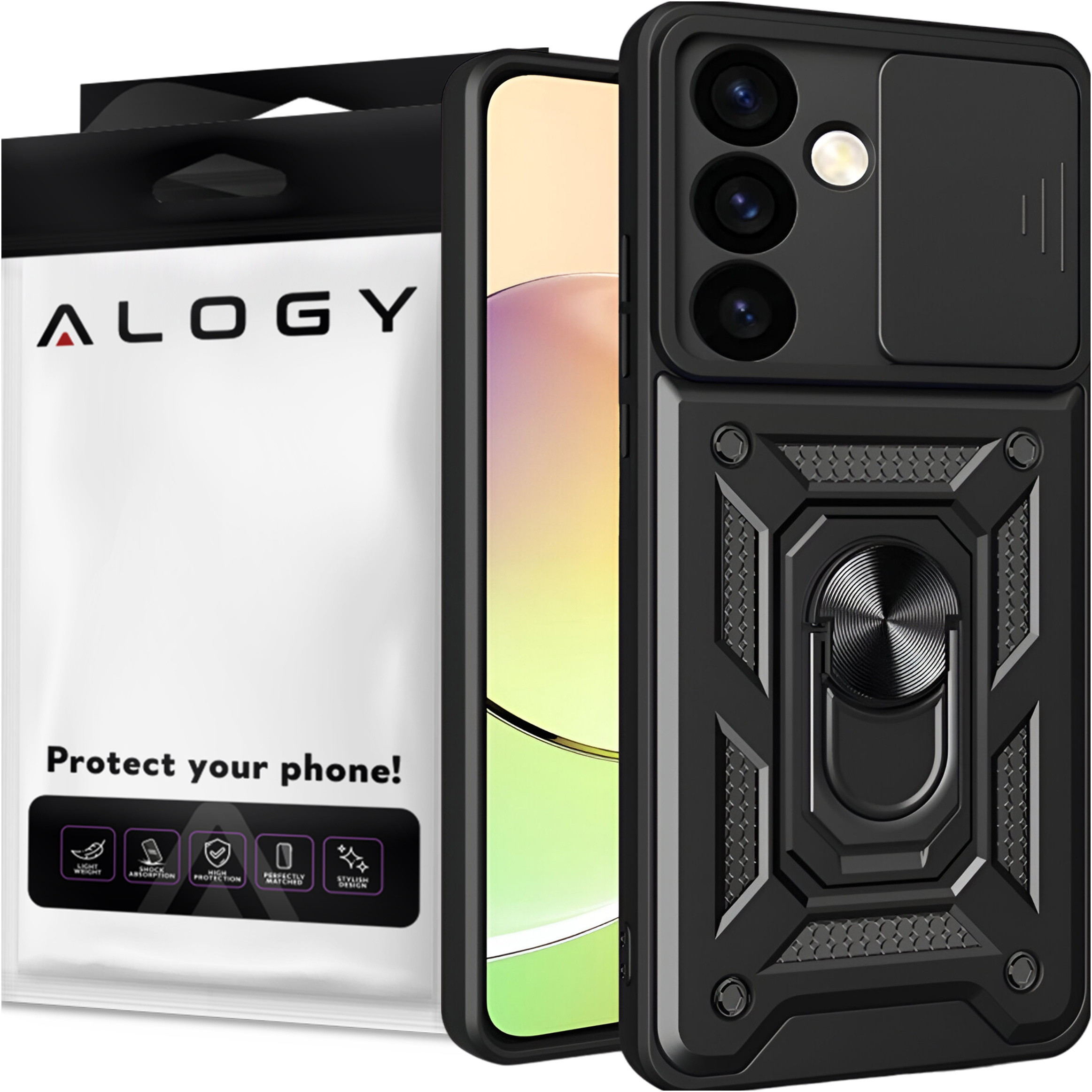Die Original-Hybridhülle für das Samsung Galaxy S24 von Alogy aus der Camshield Ring Slide Case-Serie ist sehr resistentes Gehäuse, das auch in extremen Situationen funktioniert.