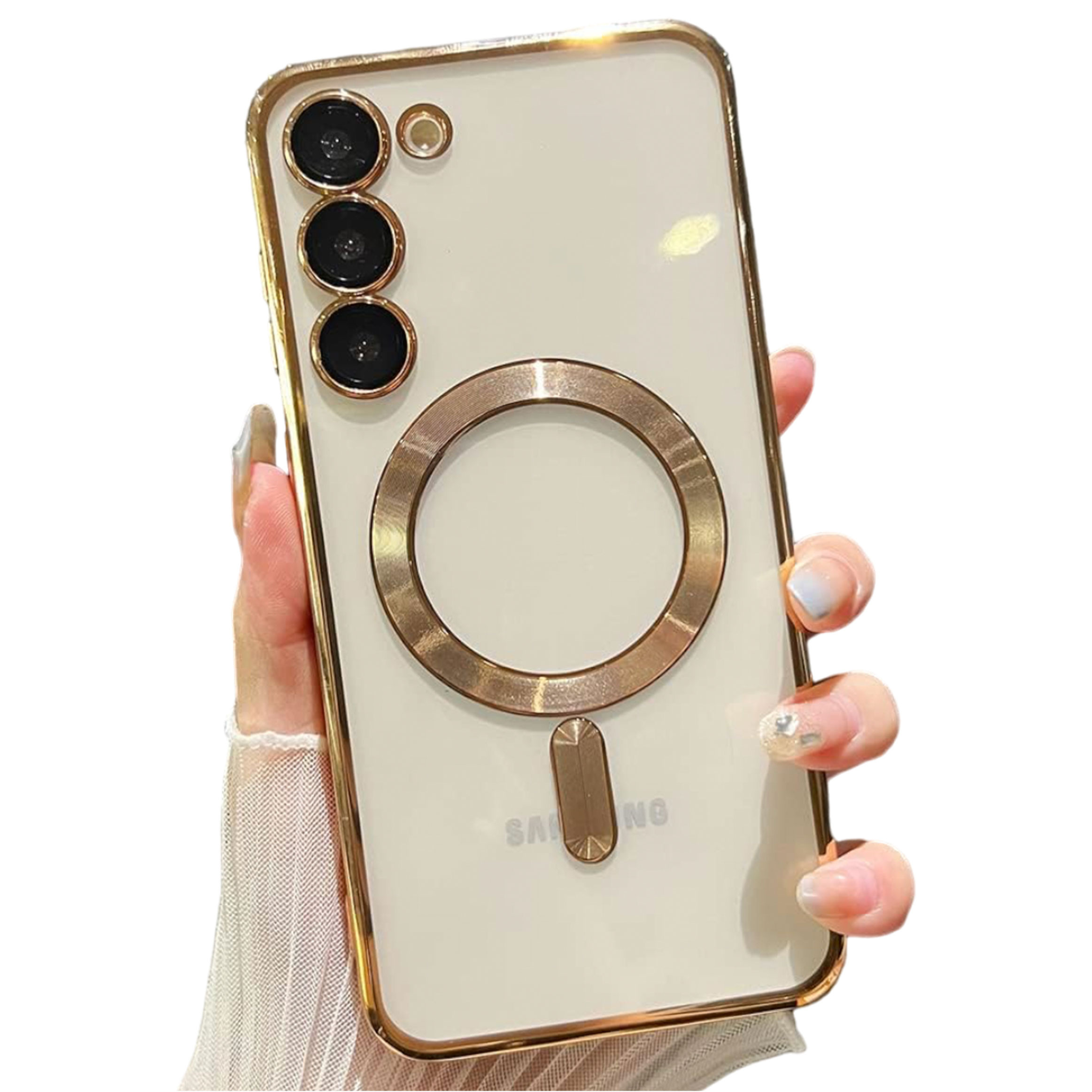 Hülle für Samsung Galaxy S24 Plus Mag Safe Glamour Case Ringgehäuse Kameraschutz Alogy Gold Transparentes Glas