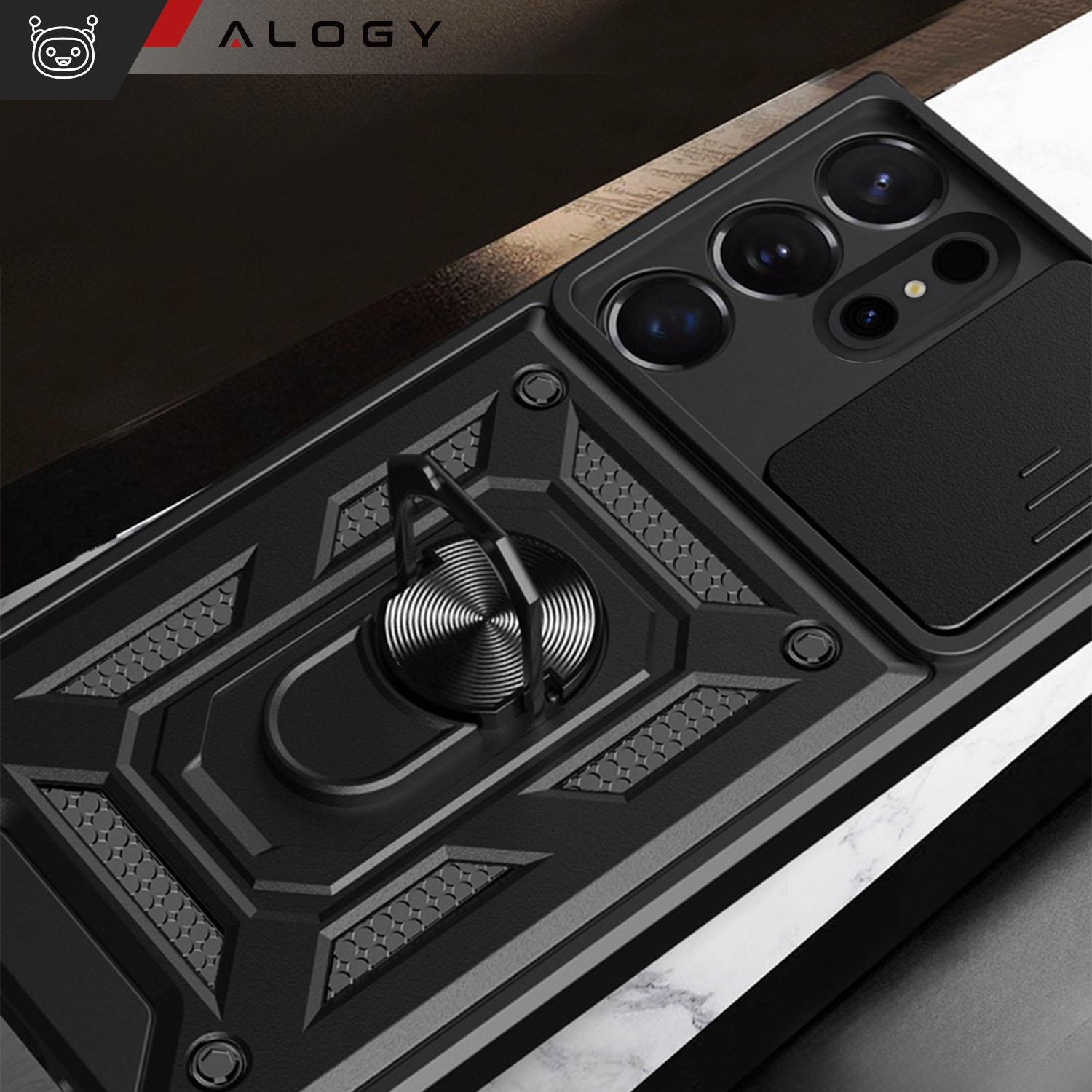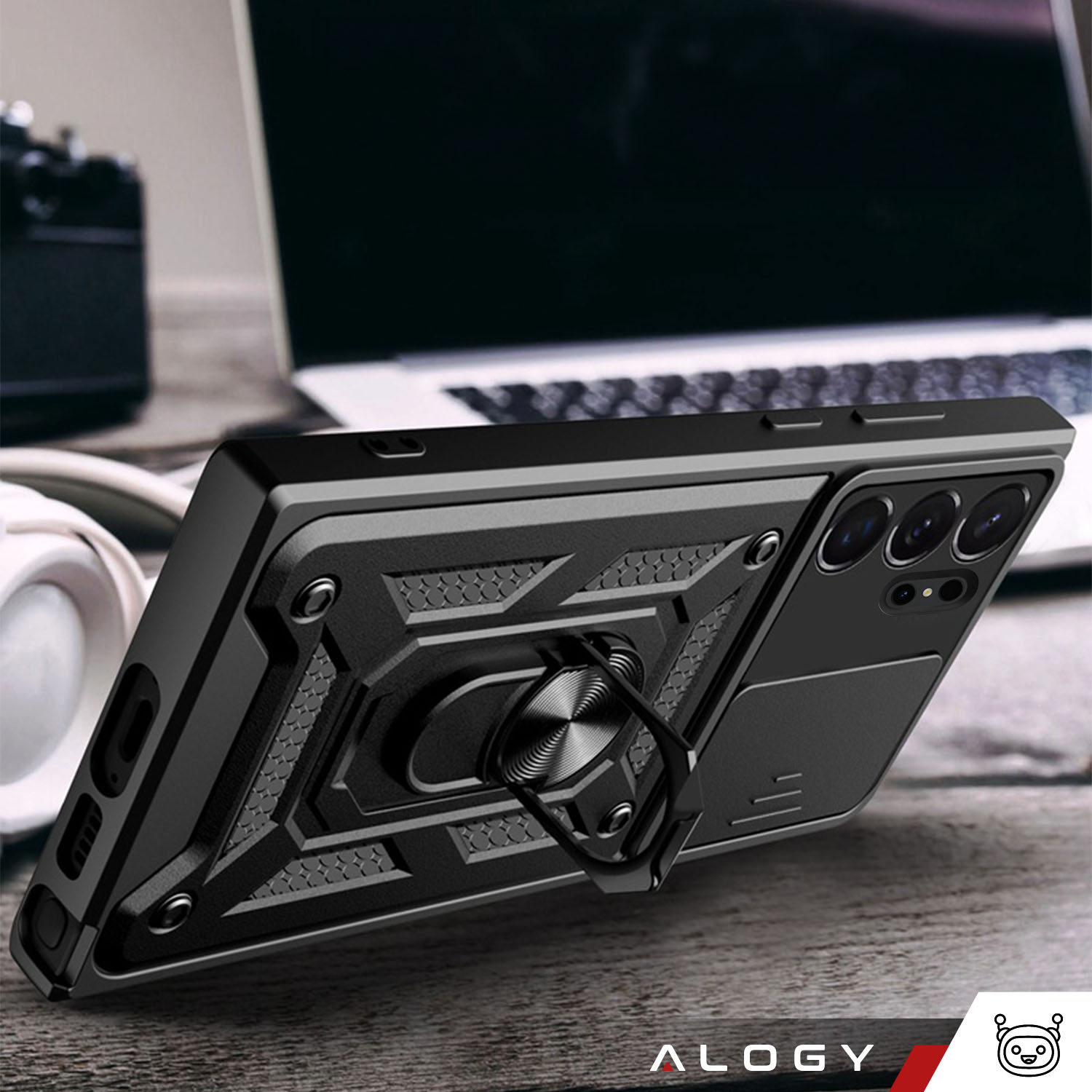 Original Hybrid-Hülle für Samsung Galaxy S24 Ultra aus der Alogy-Serie Camshield Ring Slide Case ist hoch gepanzert Fall, der auch in extremen Situationen funktioniert.