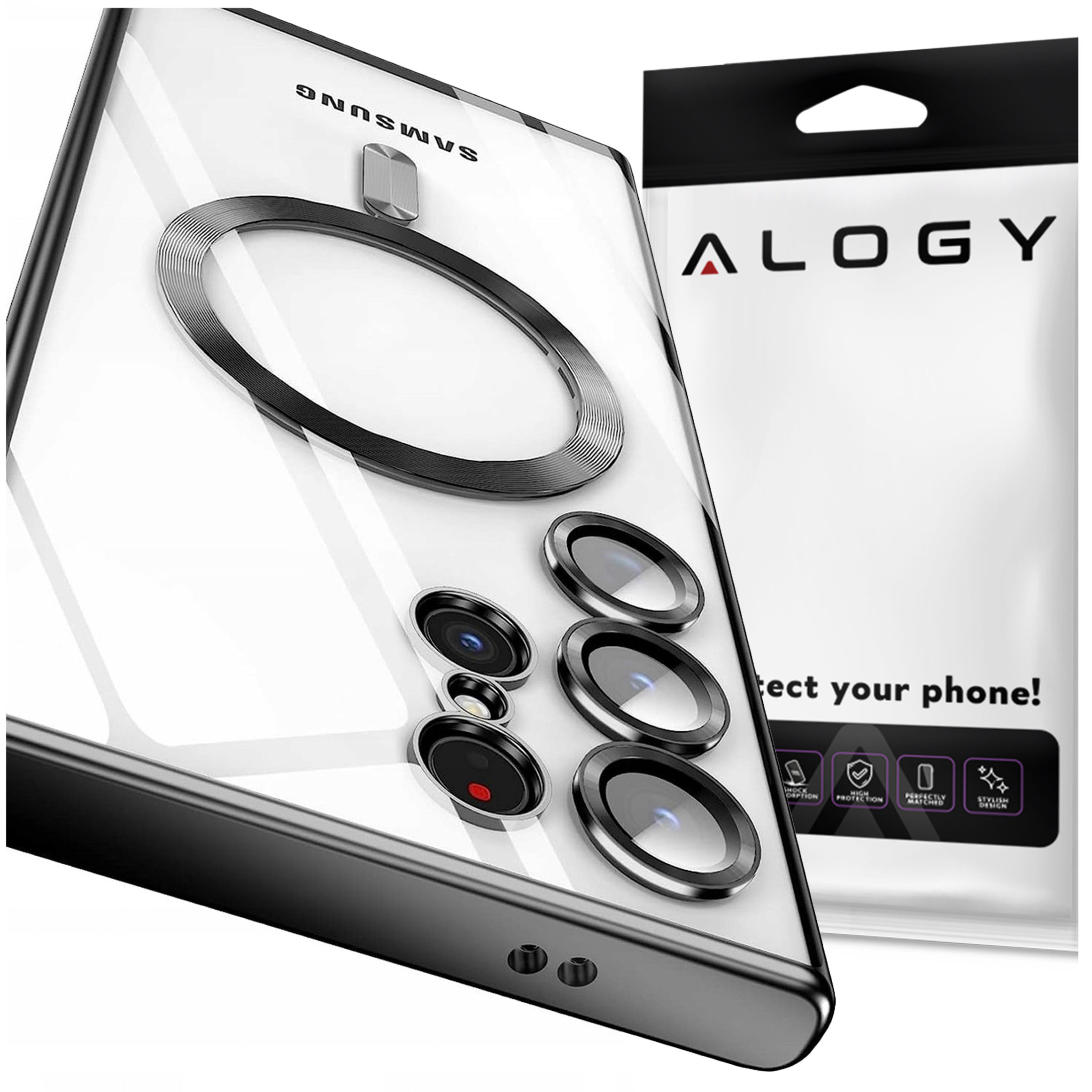 Hülle für Samsung Galaxy S24 Ultra Mag Safe Glamour Case Ringgehäuse Kameraschutz Alogy Schwarz Transparentes Glas