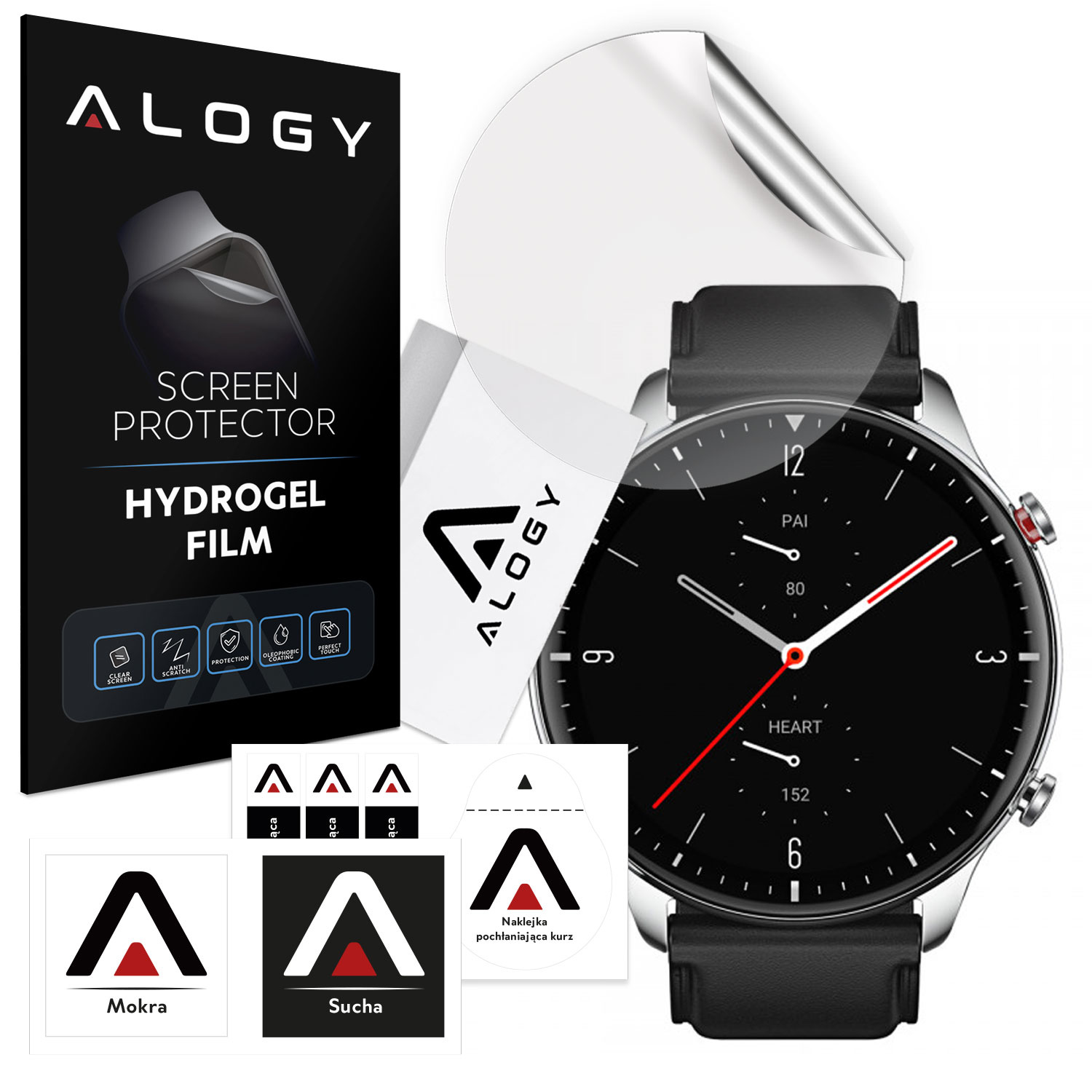 Die oleophobe Beschichtung schützt unseren Bildschirm vor Fett und der Einwirkung von Fingerabdrücken. Eine empfindliche Beschichtung ermöglicht es Ihnen, unsere Smartwatch bequem zu verwenden. Die Alogy-Folie wird mit einem speziellen Plotter geschnitten, wodurch uns Präzision garantiert wird. Dank dieser Option ist die Folie Case Friendly – Sie können die Hülle problemlos auf der Smartwatch verwenden.