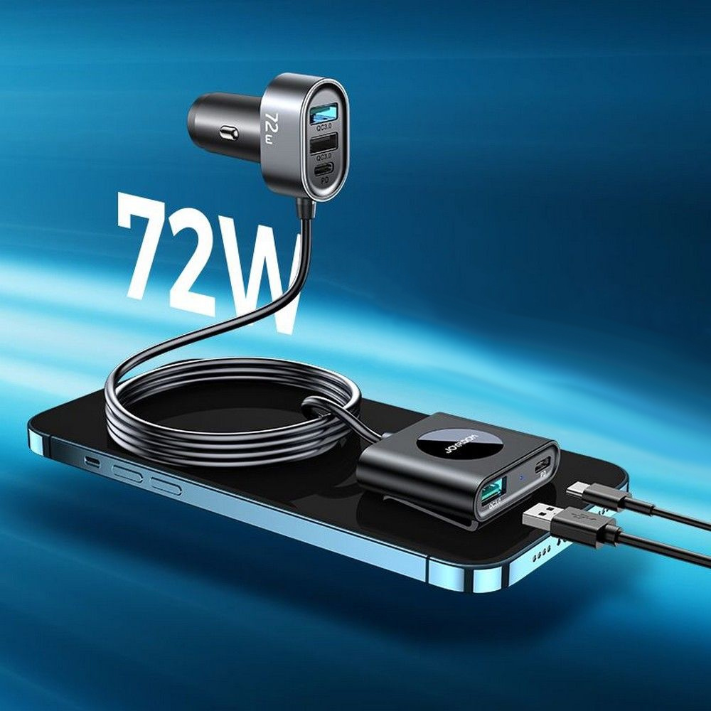 Durch die kompakten Abmessungen können wir das Ladegerät überall hin mitnehmen und genießen den universellen Einsatz in jedem Fahrzeug. Mit einem langen Kabel können Sie die Geräte der Passagiere von den Rücksitzen aus aufladen, und der eingebaute Clip am Ladegerät kann überall platziert werden. Das Joyroom-Produkt ist mit den meisten auf dem Markt erhältlichen Mobilgeräten kompatibel und funktioniert sowohl mit Android- als auch mit iOS-Systemen.