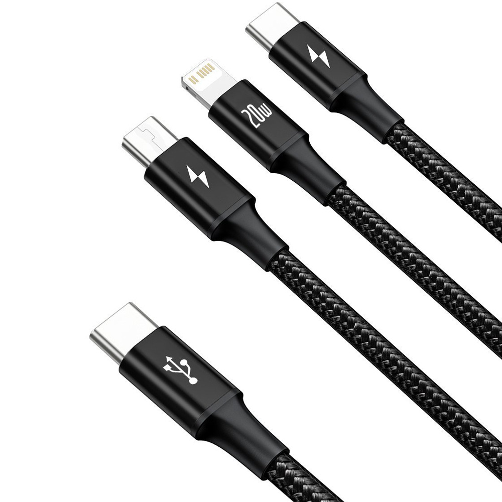 Kabel 3w1 Baseus Rapid Series USB-C für Micro-USB Lightning USB-C PD 20W 1,5m
