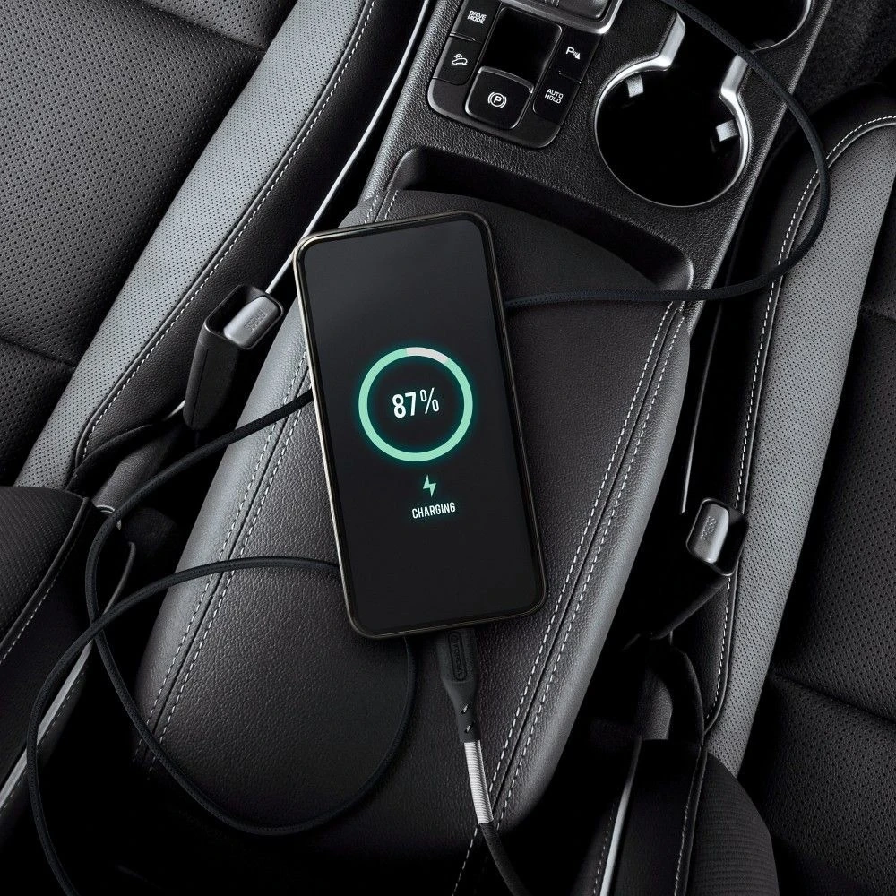 Kabel umożliwia także jednoczesny transfer danych z prędkością do 480 Mbps, pozwalając szybko synchronizować zdjęcia, filmy i inne pliki. Co ważne, przewód jest w pełni kompatybilny z Android Auto™ oraz Apple CarPlay®, dzięki czemu sprawdzi się w nowoczesnych systemach multimedialnych samochodów.