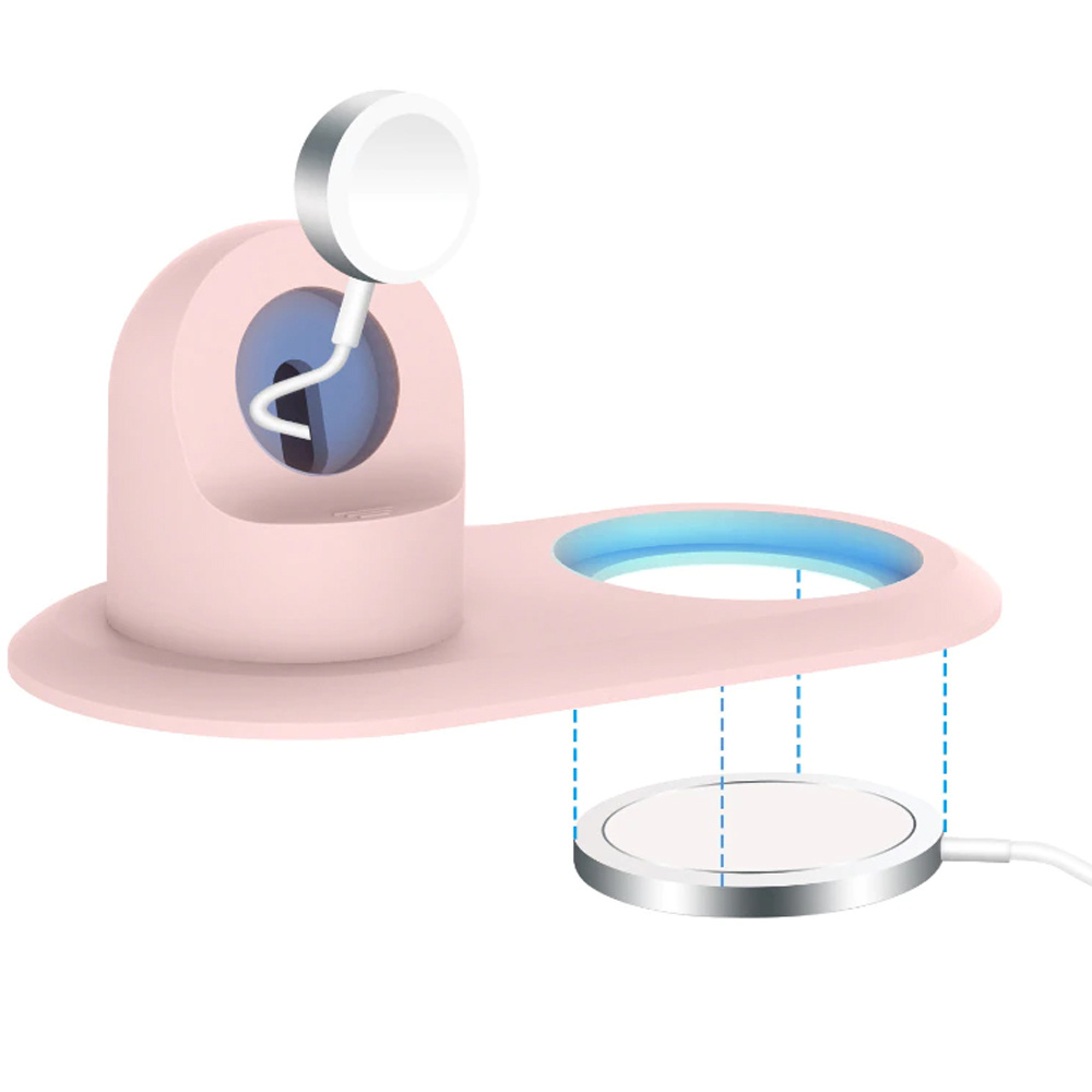 Der hochwertige Alogy-Markenhalter ist ein Produkt, das für das MagSafe-Ladegerät entwickelt wurde. Es bietet Komfort beim Laden von Apple Watch und Apple iPhone. Der Ständer besteht aus strapazierfähigem und starkem Silikon, wodurch er Sicherheit und Stabilität gewährleistet. Darüber hinaus ist das Design des Zubehörs flexibel, sodass wir das Lademodul problemlos darin platzieren können.