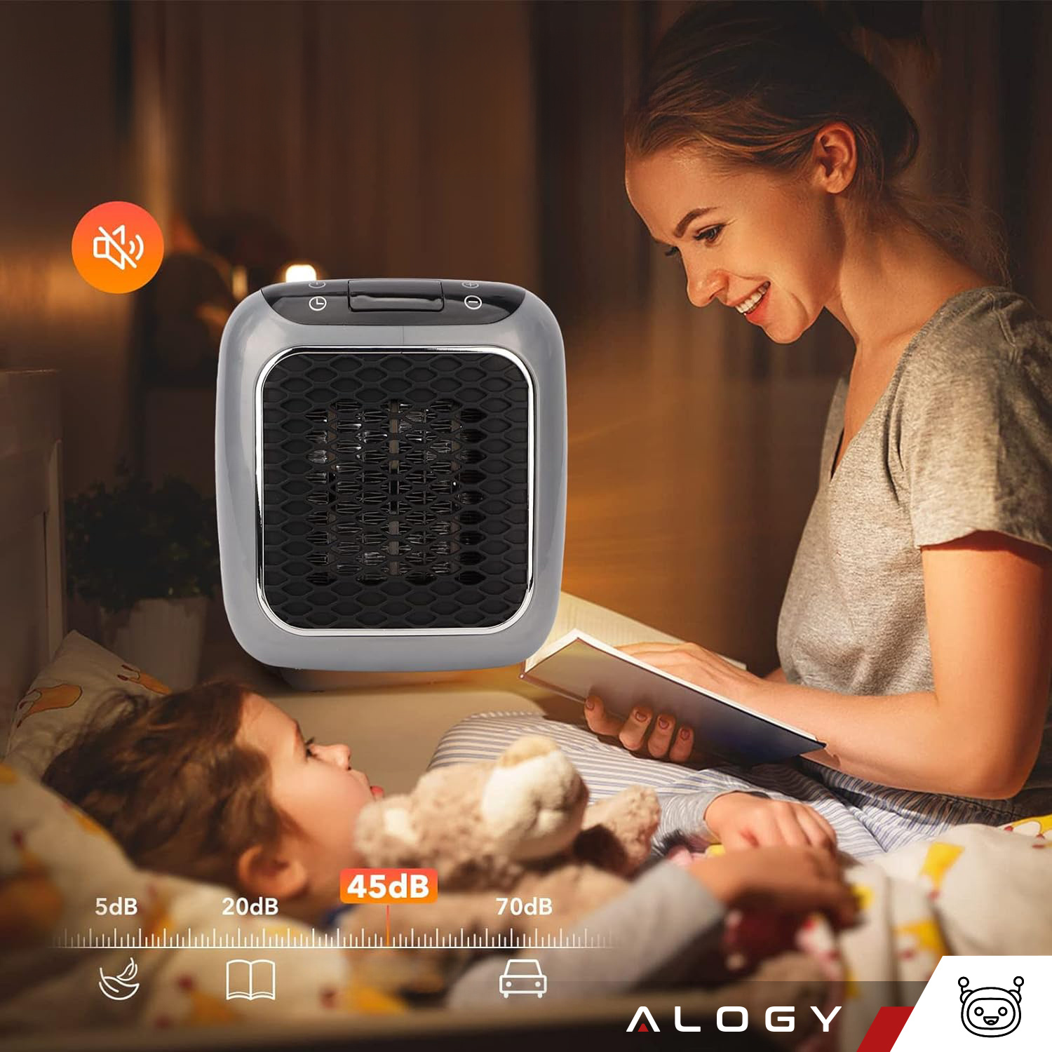 Alogy Mini-Elektroheizung für Steckdose 800 W, grau