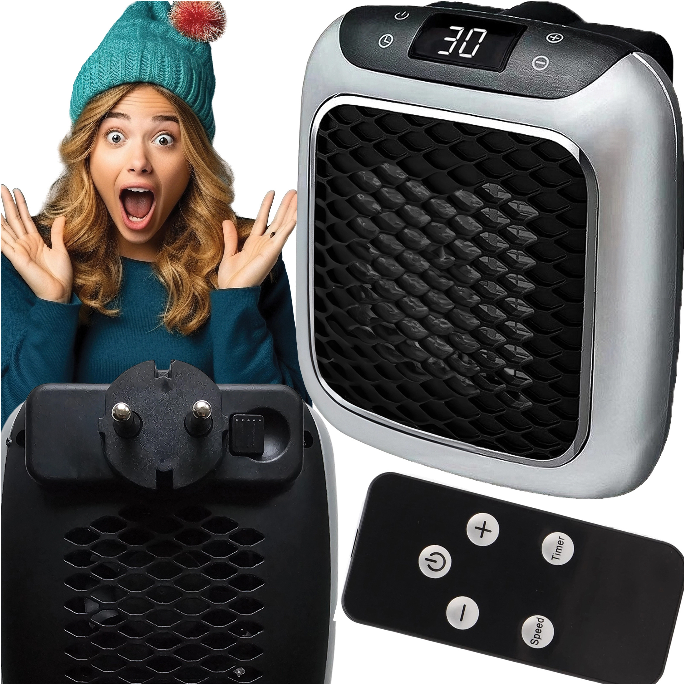 - Das Set beinhaltet Mini-Heizung 800 W Fernbedienung