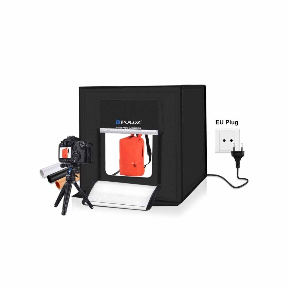 Puluz-Beleuchtungszelte werden verwendet, um hochwertige, schattenfreie Fotos von Objekten zu erstellen. Das ganze Set ist sofort einsatzbereit, die Montage dauert nur wenige Minuten. Es ist handlich, sodass wir es im Freien, zu Hause oder im Büro verwenden können. Das Produkt wird die Erwartungen selbst der anspruchsvollsten Benutzer erfüllen. Alles, was wir brauchen, um Aufnahmen zu machen, ist eine Kamera oder ein Telefon. Für die volle Funktionalität ist es nicht notwendig, zusätzliches Zubehör zu kaufen. Schattenlose Zelte haben nach dem Zusammenklappen eine handliche Größe, sodass ihre Aufbewahrung kein Problem darstellt. Die Montage des Zeltes ist einfach und nimmt wenig Zeit in Anspruch. Das Zelt hat keinen Strobe-Effekt, ist hell und verteilt die Wärme sehr gut.