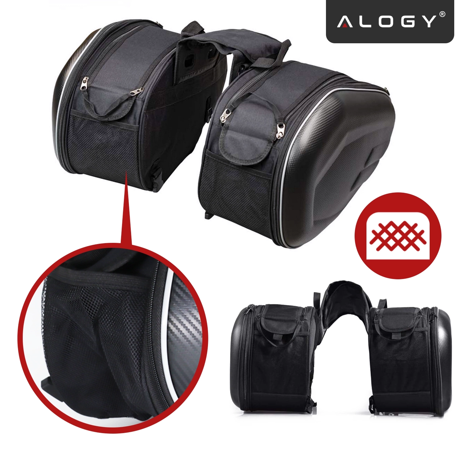 ▶️ Motorradtaschen Satteltaschen 38-58L Schwarzes Carbon-Design Verstärkt Alogy RoadPack™