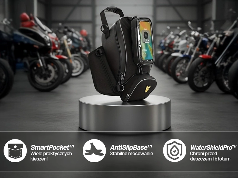 Diese Motorradtasche mit integrierter Handyhülle löst dieses Problem und ermöglicht Ihnen die volle Kontrolle über Ihr Smartphone, selbst bei Regen . Dank TouchSafe™-Technologie funktioniert der Bildschirm auch durch die Schutzfolie hindurch, und die Montage am Tank mit dem QuickMount™-System ist kinderleicht . Im Inneren finden Handschuhe, Dokumente, eine Powerbank und andere wichtige Dinge Platz. Bei Bedarf lässt sich die Tasche in eine praktische Handtasche verwandeln . Sie ist die perfekte Lösung für Motorradfahrer, die Sicherheit, Funktionalität und Stil vereinen möchten – egal ob auf dem Weg zur Arbeit oder auf der Straße.