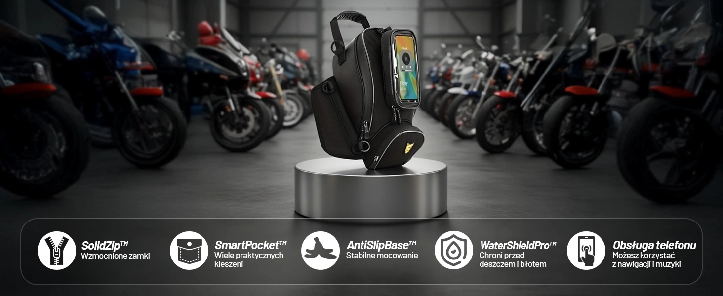 ⭐ Das neueste MotoRider™-Modell ⭐ Qualitäts- und Wasserdichtigkeitszertifikat ⭐ Touchscreen funktioniert durch die Folie ⭐ QuickMount™ – schnelle Montage und Demontage ⭐ AntiSlipBase™ – rutschfester Standfuß ⭐ WaterShieldPro™ – Regenschutz ⭐ SolidZip™ – verstärkte Reißverschlüsse ⭐ SmartPocket™ – Innenfächer für Kleinigkeiten ⭐ SecureStrap™ – inklusive Sicherheitsgurt ⭐ 10 Jahre Branchenerfahrung ⭐ über 50.000 zufriedene Kunden ⭐