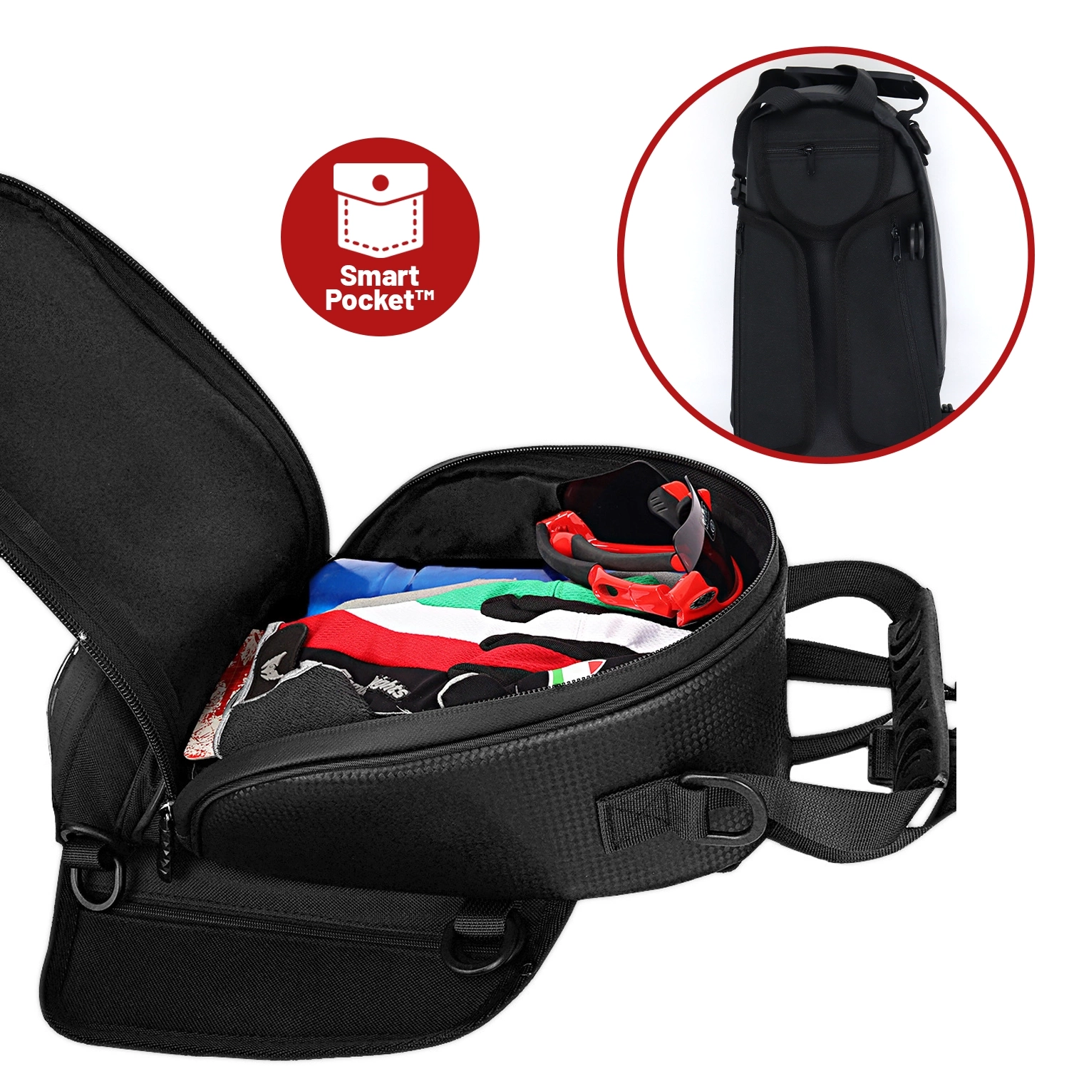 Die MotoRider™ Motorradtasche mit Handyhülle ist eine vielseitige Lösung für Komfort und Sicherheit auf jeder Fahrt. Dank Tankbefestigungssystem und abnehmbarer Handyhülle eignet sie sich perfekt nicht nur für Motorradtouren , sondern auch für den Alltag.