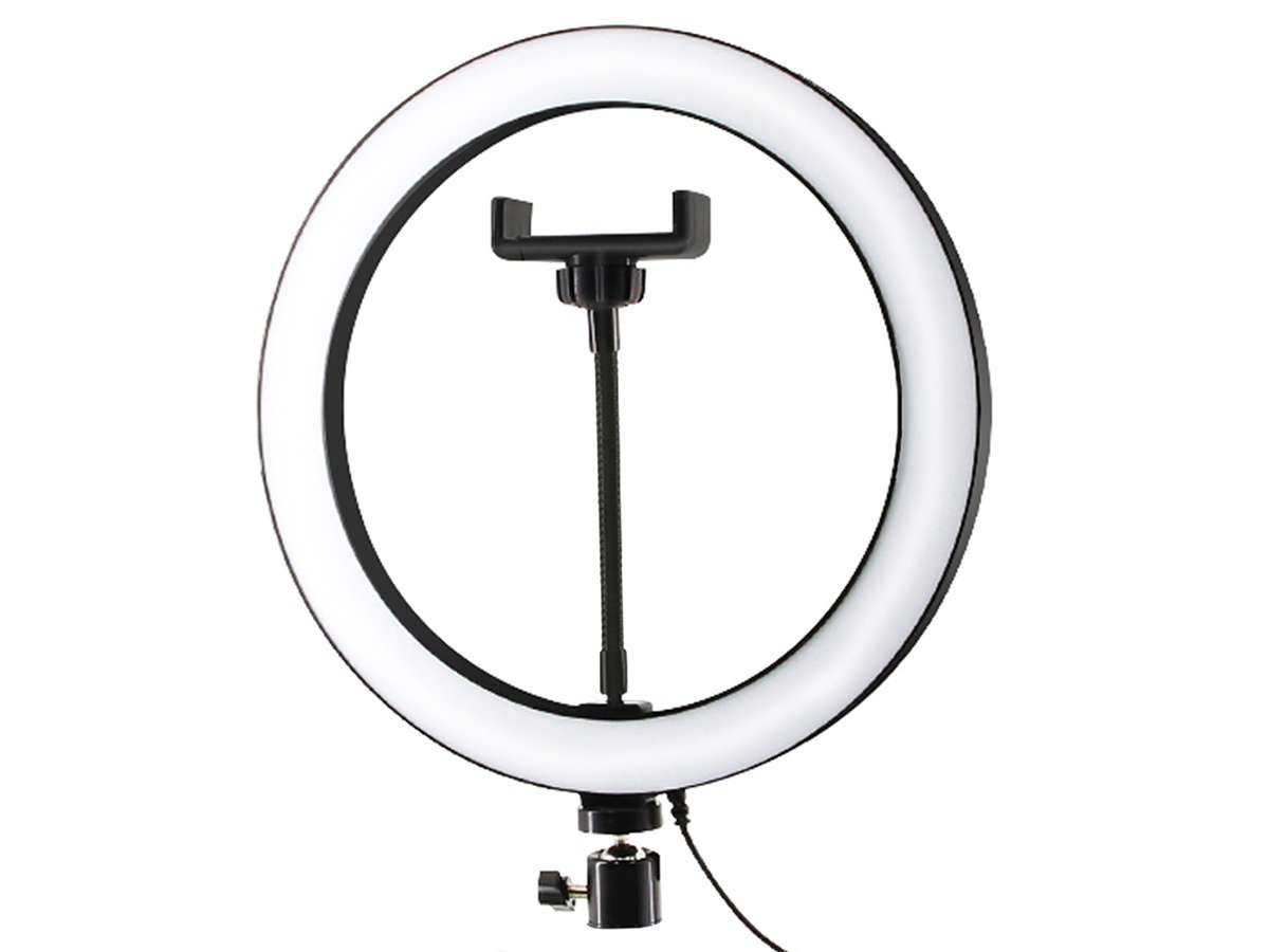 Die 10-Zoll-LED -Ringlampe ist ein ideales Gadget für Schönheitssalons, Friseursalons oder für den Heimgebrauch beim Filmen / Fotografieren von Gesichtern. Das Set enthält auch ein Stativ, das auf einem Schreibtisch oder einer Tischplatte mit einer maximalen Breite von 5,5 cm montiert werden kann. Es ist in der Struktur zweiteilig eingebaut und ermöglicht eine noch bessere Kontrolle des Lampenpositionssystems.