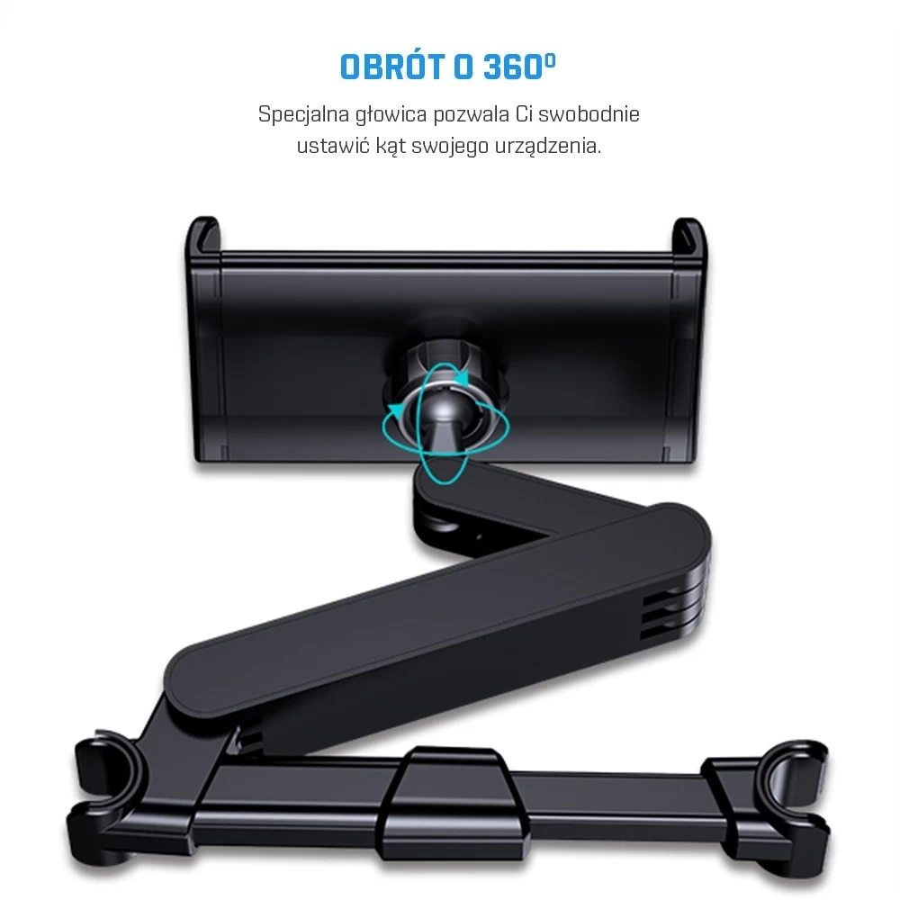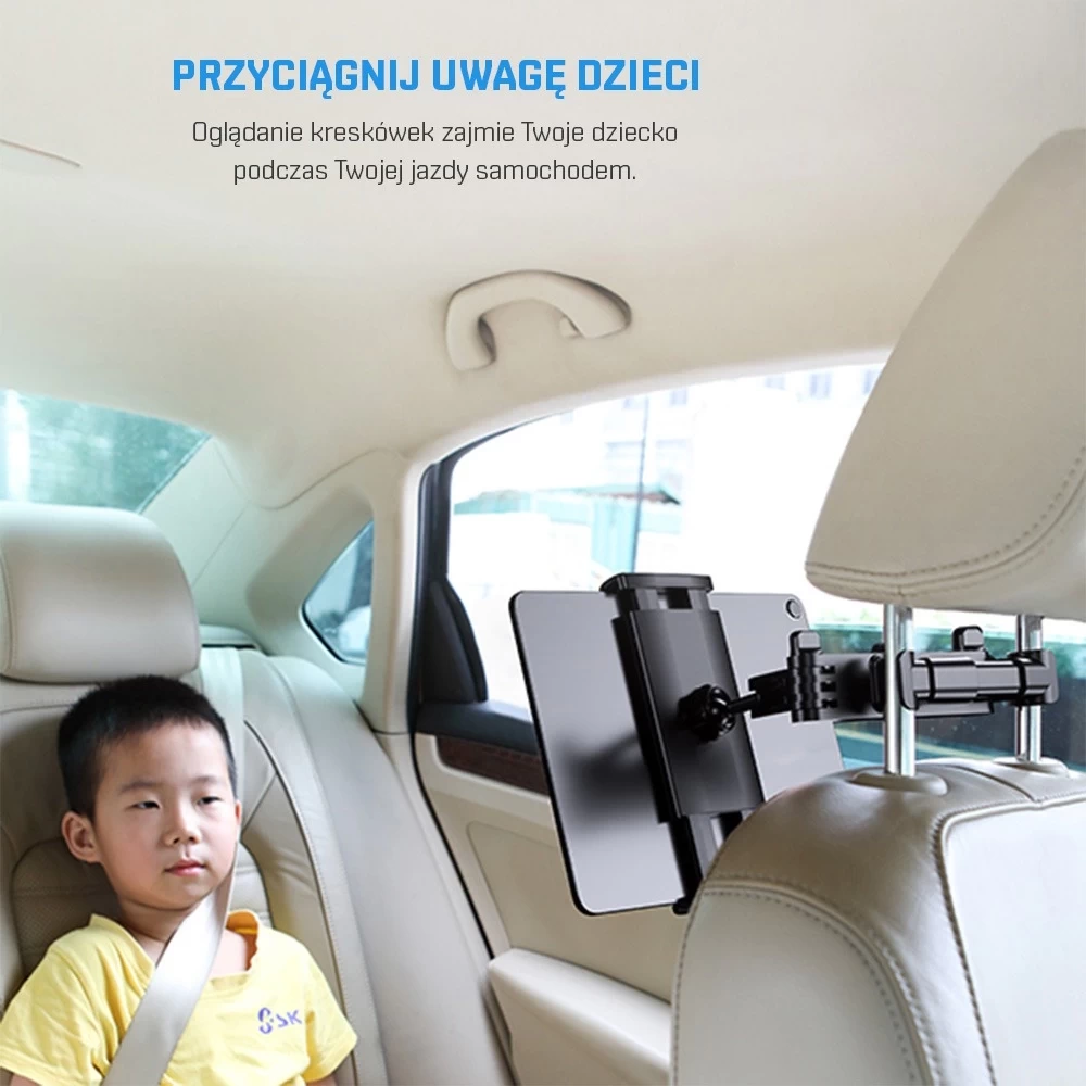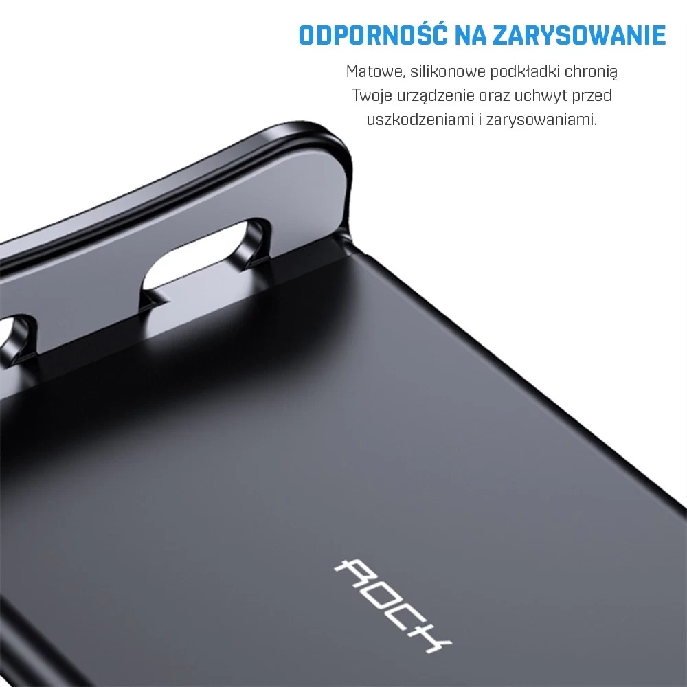 Die universelle ROCK-Kopfstützen-Autohalterung passt auf die meisten Modelle von Telefonen und Tablets mit einer Diagonale von 4,5 Zoll bis 11 Zoll. Die Halterung wird mit speziellen Aktuatoren an der Kopfstütze montiert. Sie hat einen verstellbaren Arm mit einem Bewegungsbereich von 9–26 cm und 360– Gradköpfe, was sich in Benutzerkomfort niederschlägt und eine ideale Lösung für Kinder ist, die beim Autofahren gerne Zeichentrickfilme sehen.