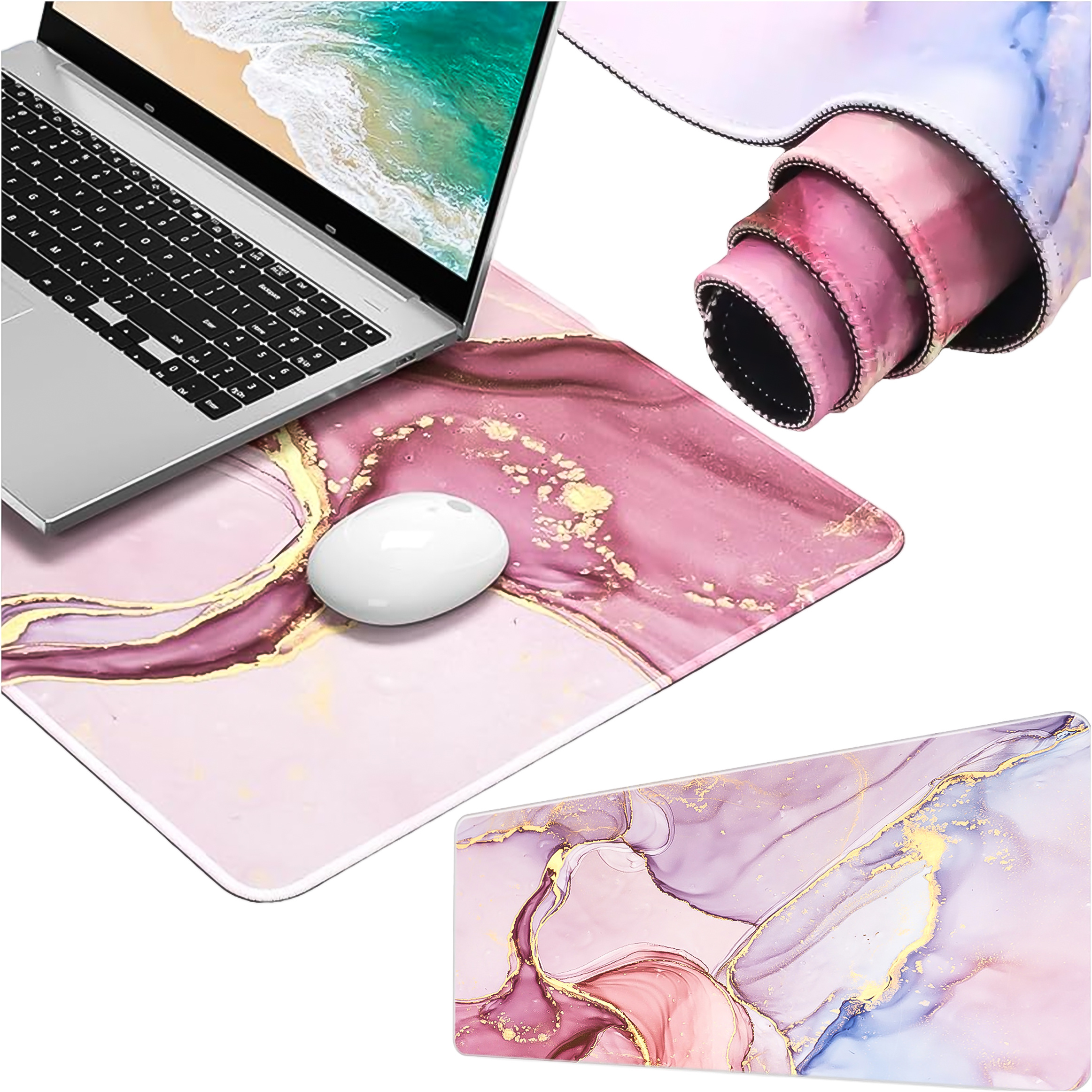 Rutschfeste Schreibtischunterlage für Alogy Marble Pink Maus und Tastatur